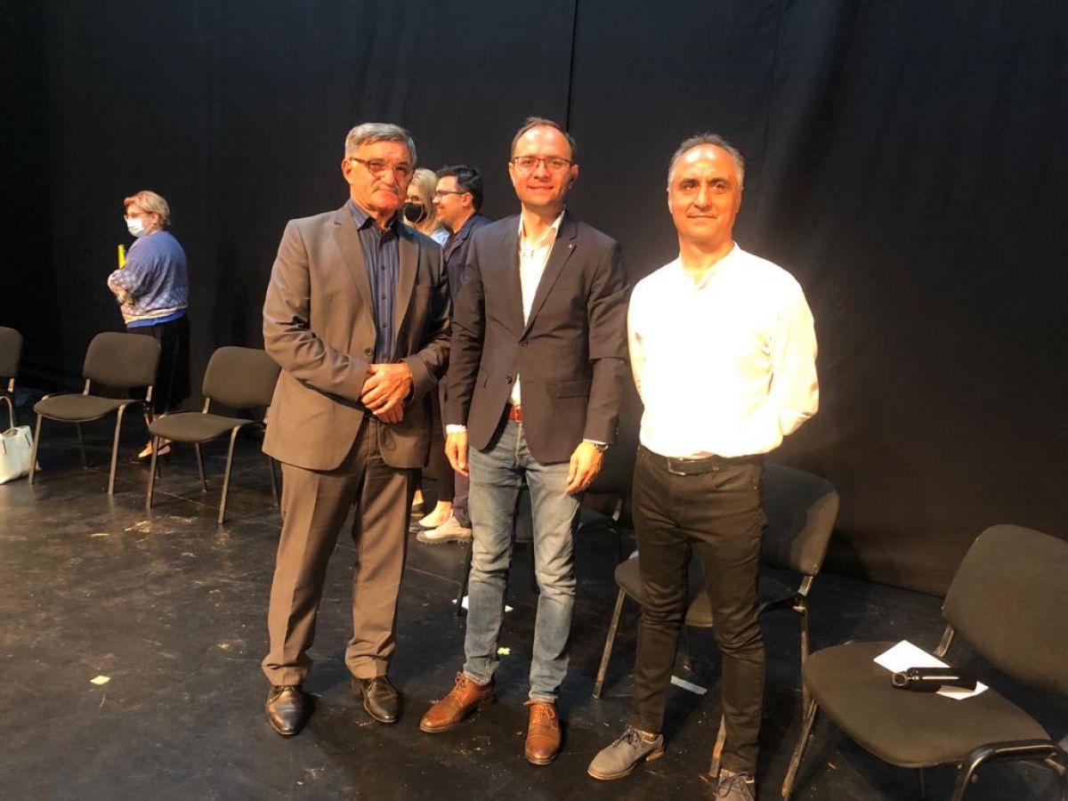 Primarul Cosmin Andrei, însoțit de viceprimarul Bogdan Buhăianu, i-a mulțumit fostului director pentru întreaga contribuție adusă culturii botoșănene și totodată i-a urat succes noului manager, Alexandru Vasilache.