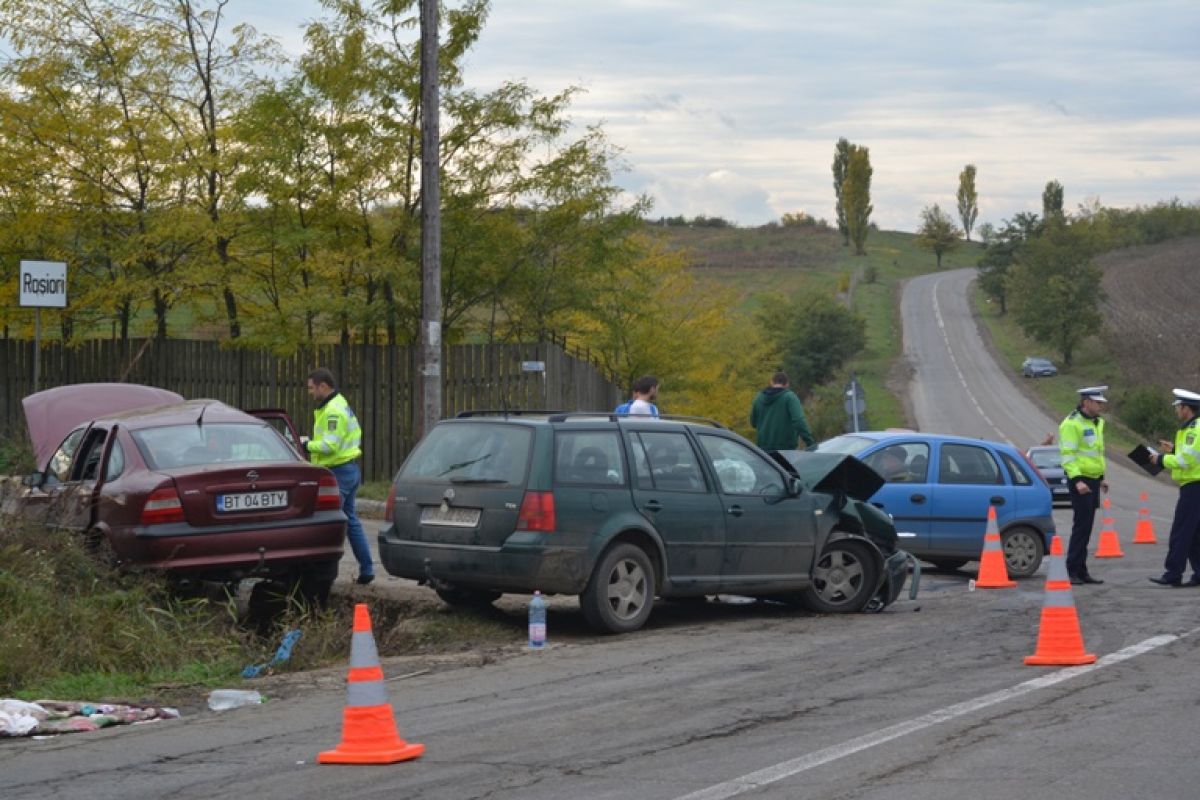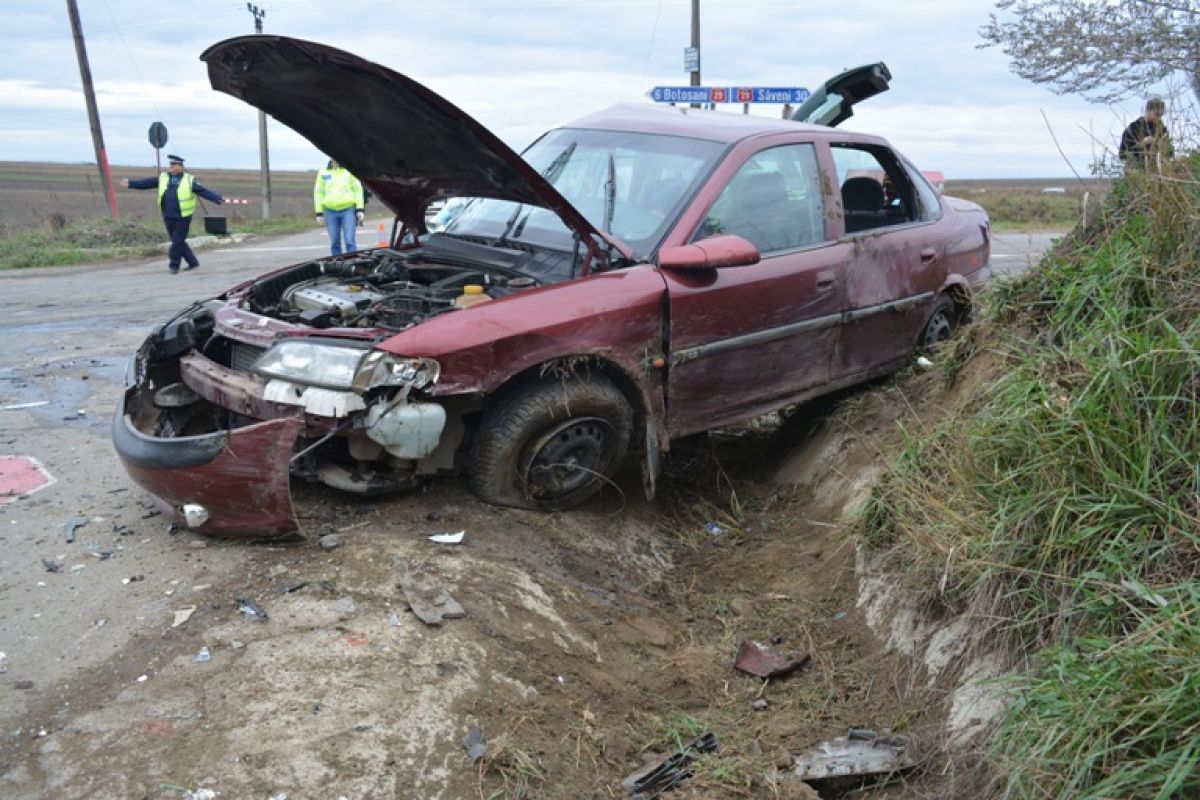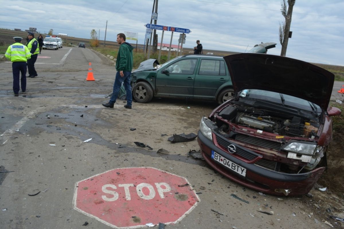 Intersecţia drumului naţional Botoşani – Săveni cu cel judeţean Costeşti – Roşiori a fost din nou scena unui accident violent. Un Opel a intrat în intersecţie de pe şoseaua fără prioritate şi a fost izbit de un VW Bora.