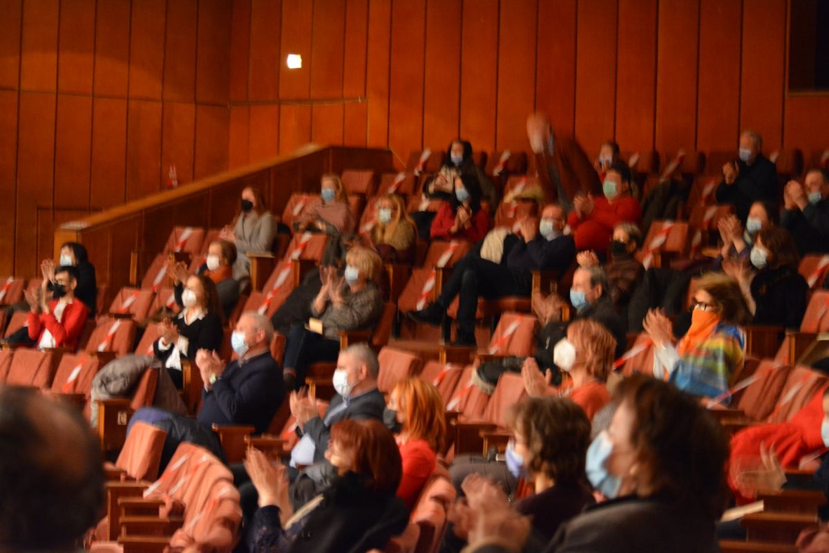 Sala Filarmonicii ”George Enescu” a primit, vineri, parcă și mai mult public decât în săptămânile anterioare. Purtând măști, respectând normele impuse, presărați printre scaunele ”interzise” cu bandă, melomanii nu renunță la seara de muzică simfonică.