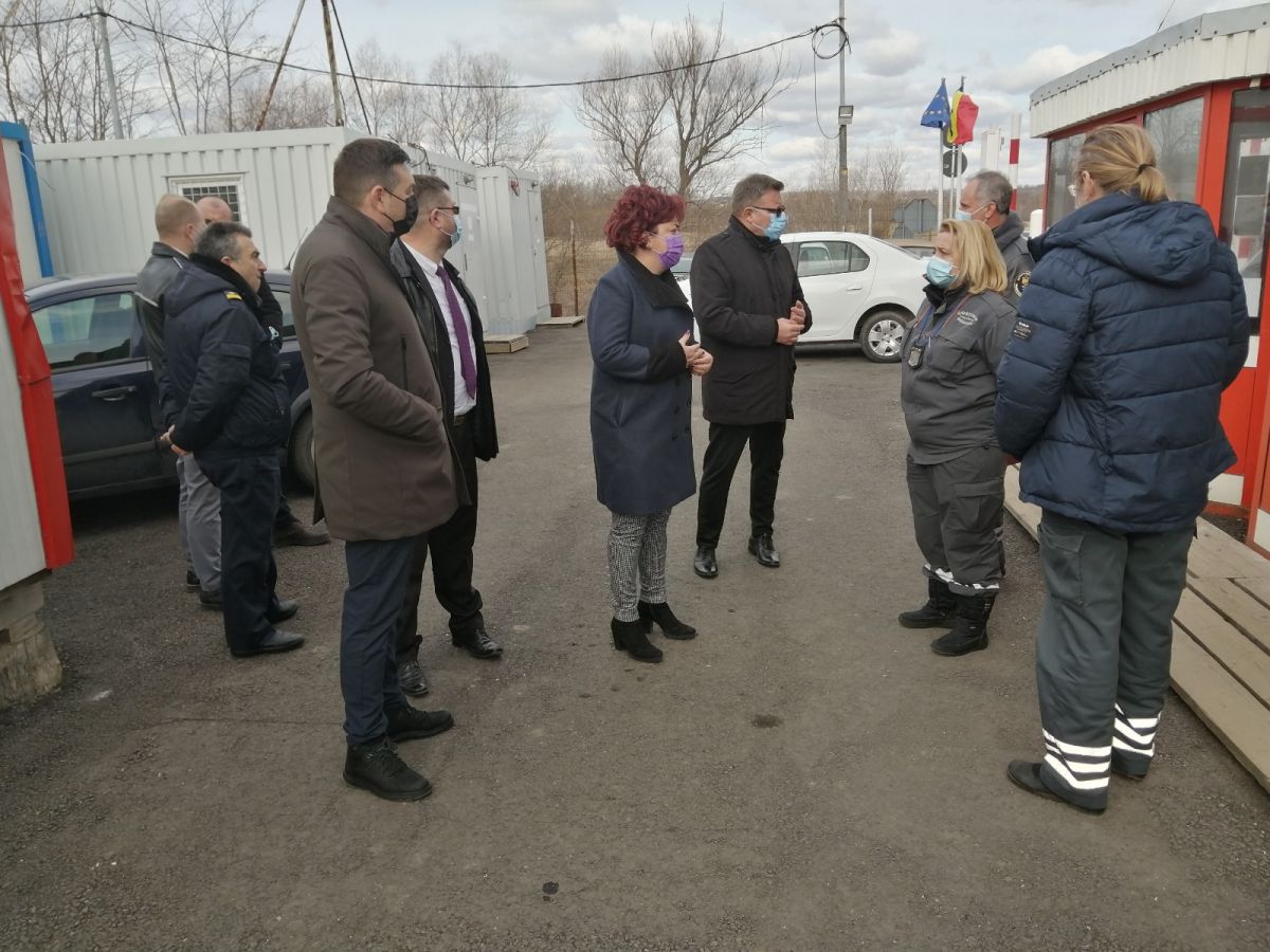 Prefectul Sorin Cornilă, împreună cu Ministrul Muncii, Marius Budăi și directorul executiv al Direcției de Sănătate Publică, Monica Adăscăliței, au vizitat astăzi punctele de trecere a frontierei cu Republica Moldova de la Rădăuți Prut și Stânca Costești.
