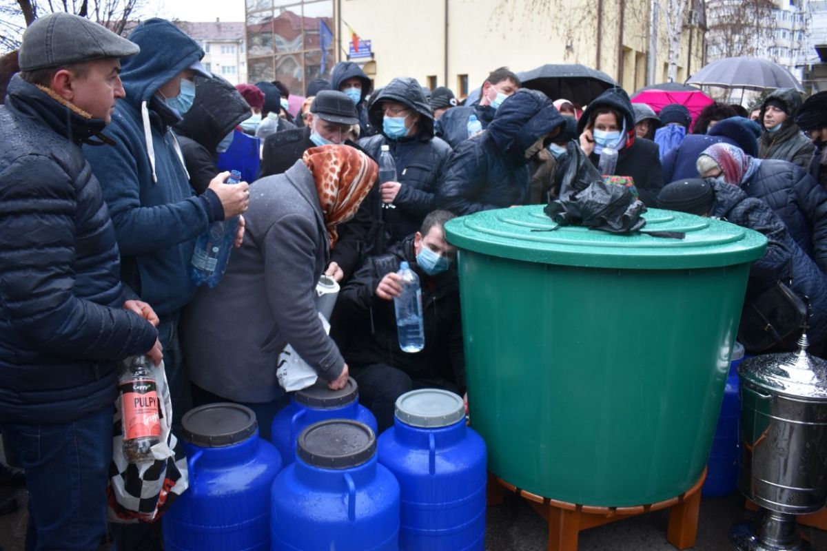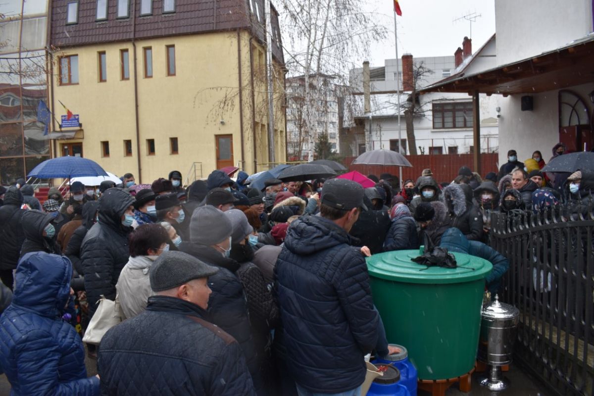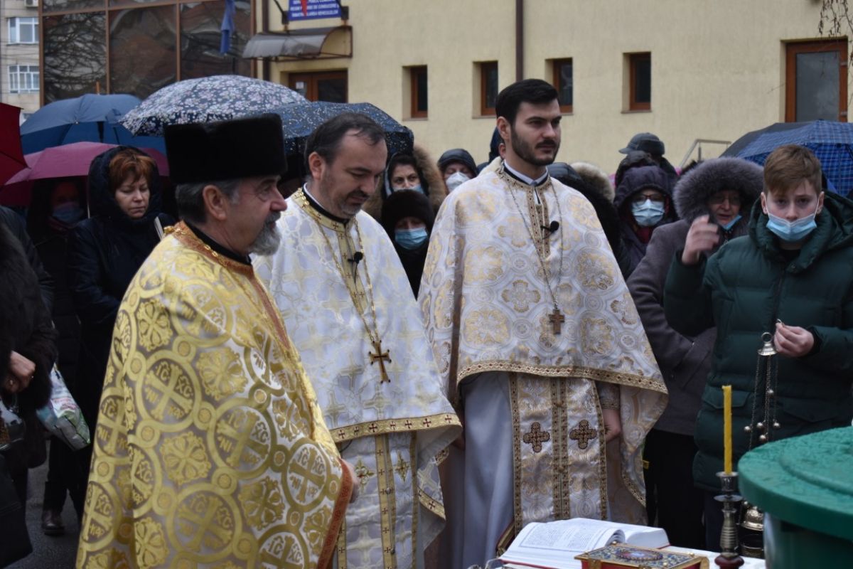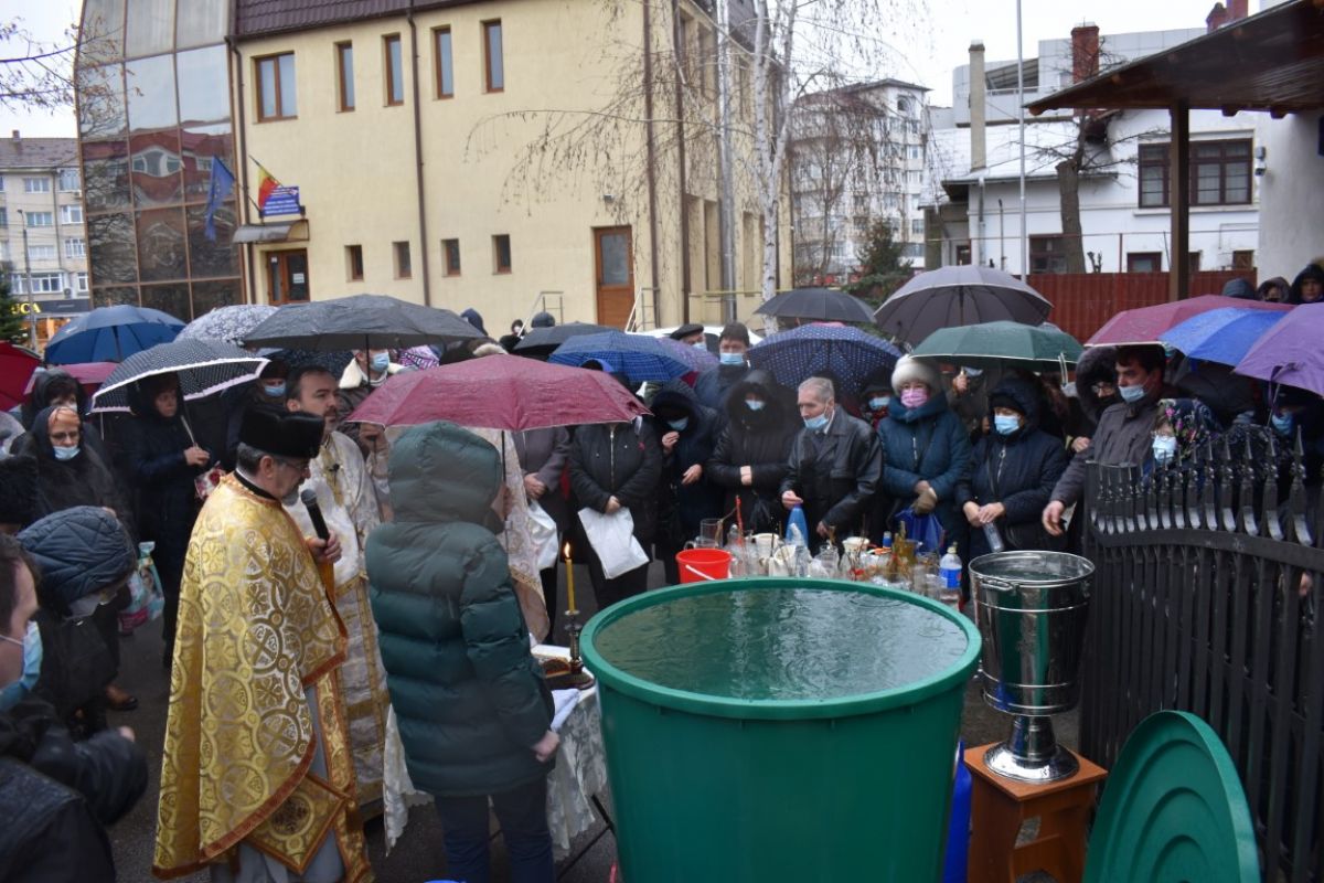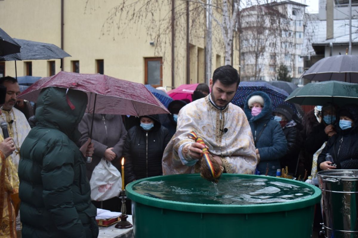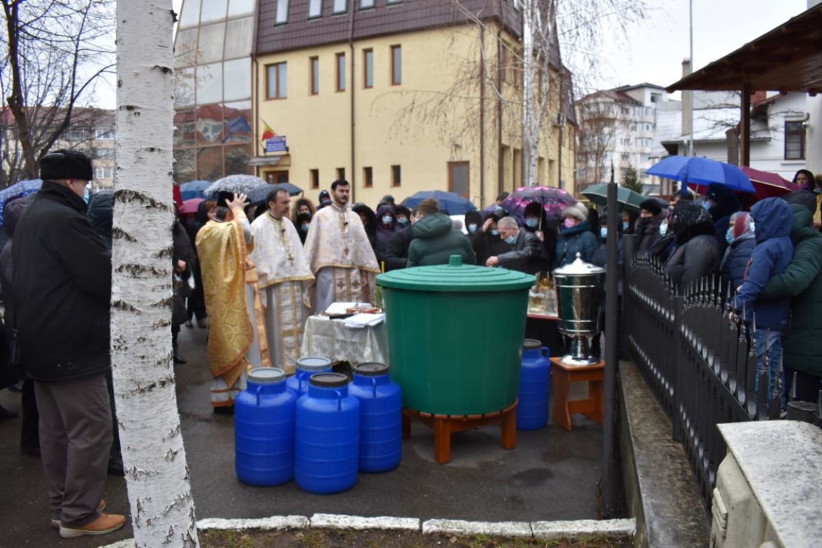 Ceremonialul a fost oficiat de preoții Teodor Cenușă și Ștefan Grădinaru, alături de părintele Cătălin Vătămanu de la Iași. În fața Bisericii au fost aduse mai multe recipiente din plastic, de toate dimensiunile pentru apa care ulterior a fost sfințită de cele trei fețe bisericești.