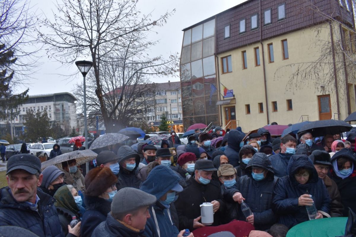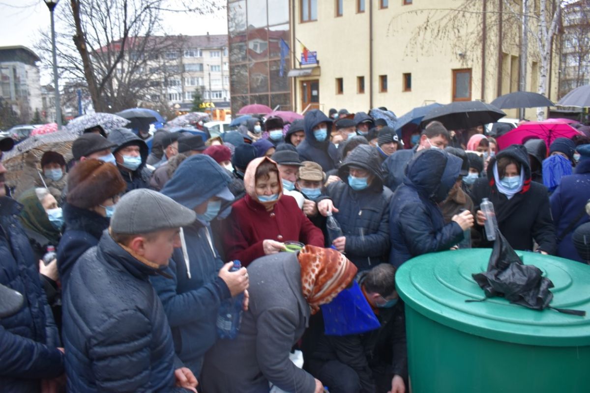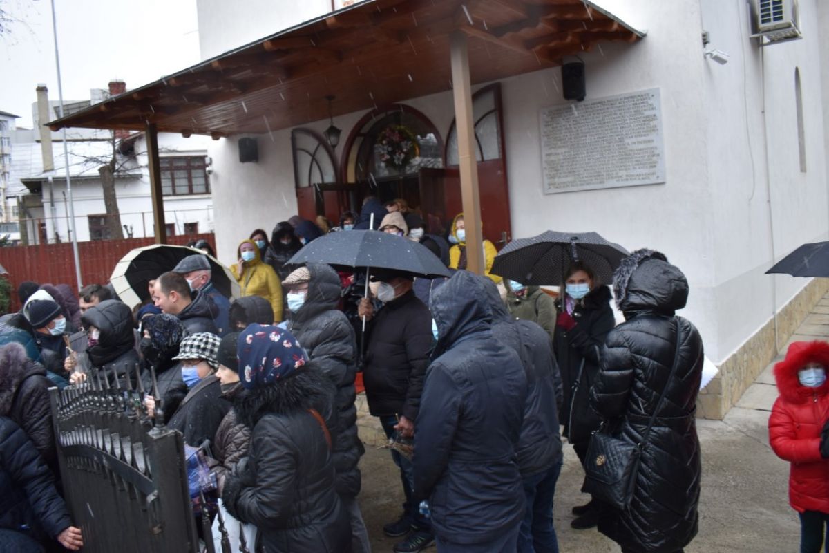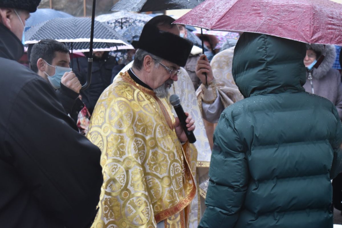 Credincioșii botoșăneni au ascultat înfrigurați și răbdători citirile preoților din Sfânta Evanghelie și s-au rugat în bărbie, șoptit. Unii s-au apărat de lapoviță cu ajutorul umbrelelor, alții și-au tras glugile la geci.