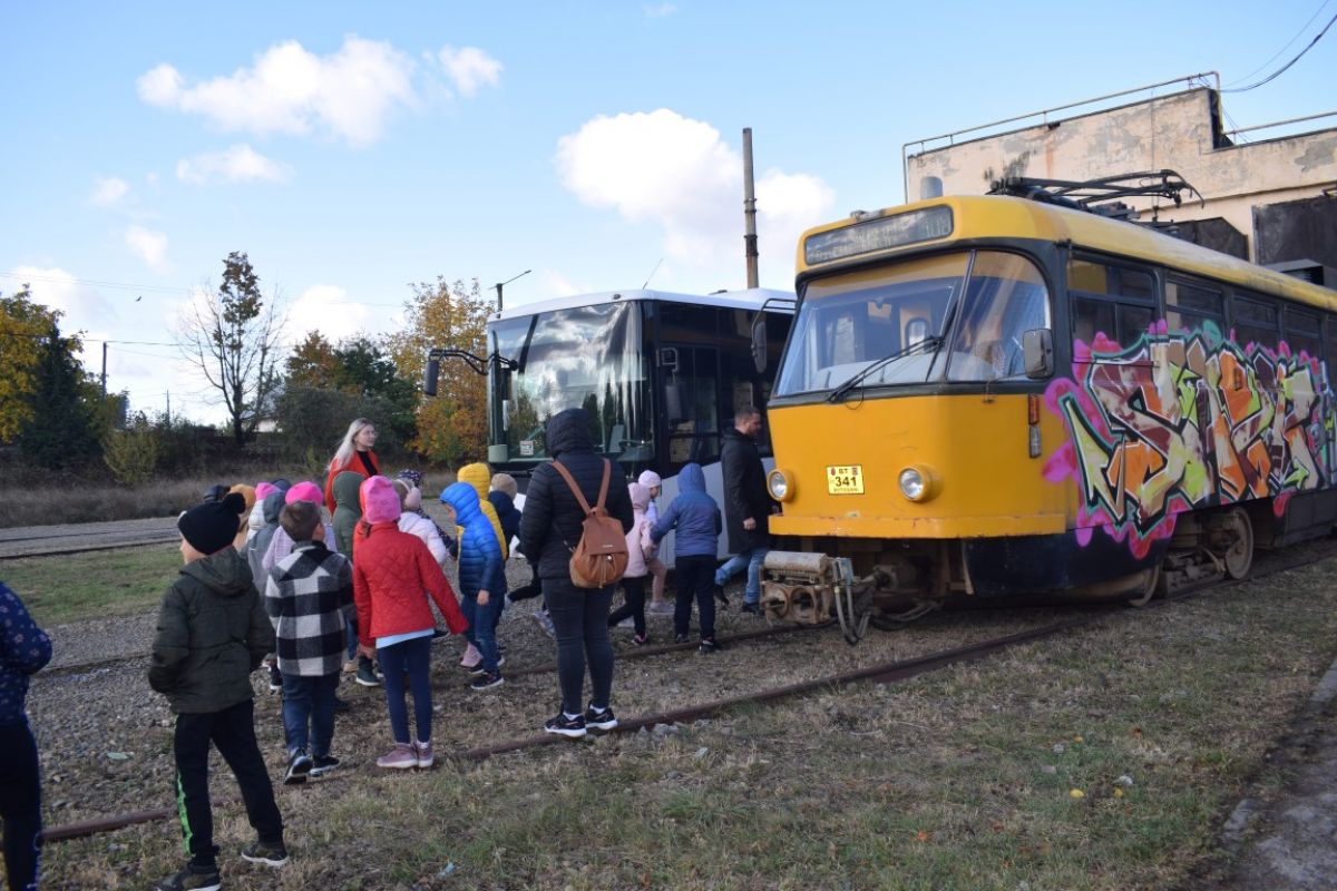 De asemenea, micuților le-au fost prezentate atât autobuzele cât și vechile tramvaie care au circulat pe străzile municipiului.