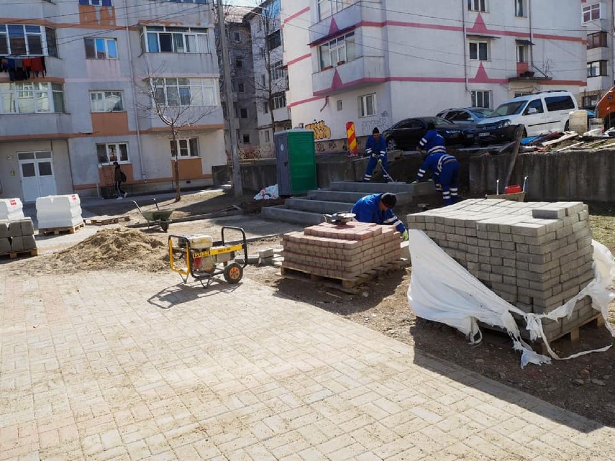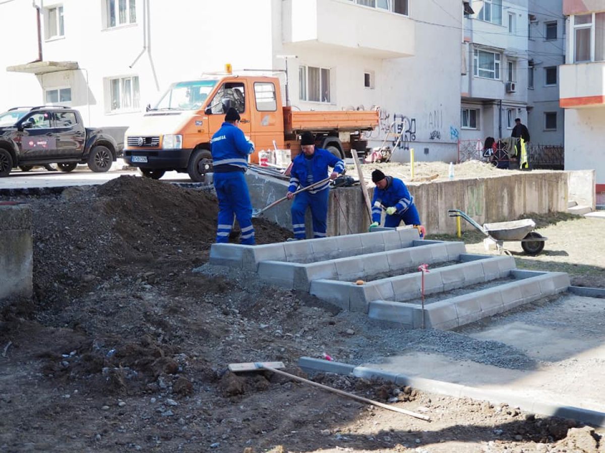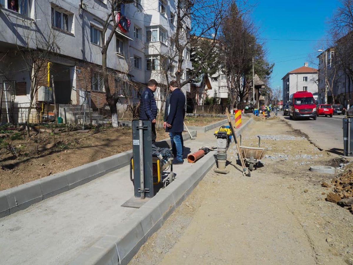 Lucrări în desfăşurare mai sunt şi pe strada Nicolae Iorga, unde se intervine în momentul de faţă la amenajarea trotuarelor, dar şi pe Gheorghe Filipescu, la partea de scări acces dintre parcare şi aleile de bloc.
