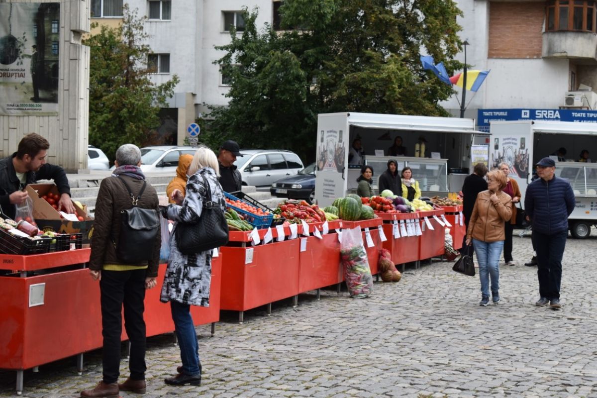 În parcarea din centrului orașului au fost aduse mai multe tarabe cu tot felul de produse. De fapt, au fost aceiași comercianți care sunt văzuți la târgurile de acest gen care sunt organizate periodic de Direcția Agricolă Județeană sau Asociația Moldoovis.