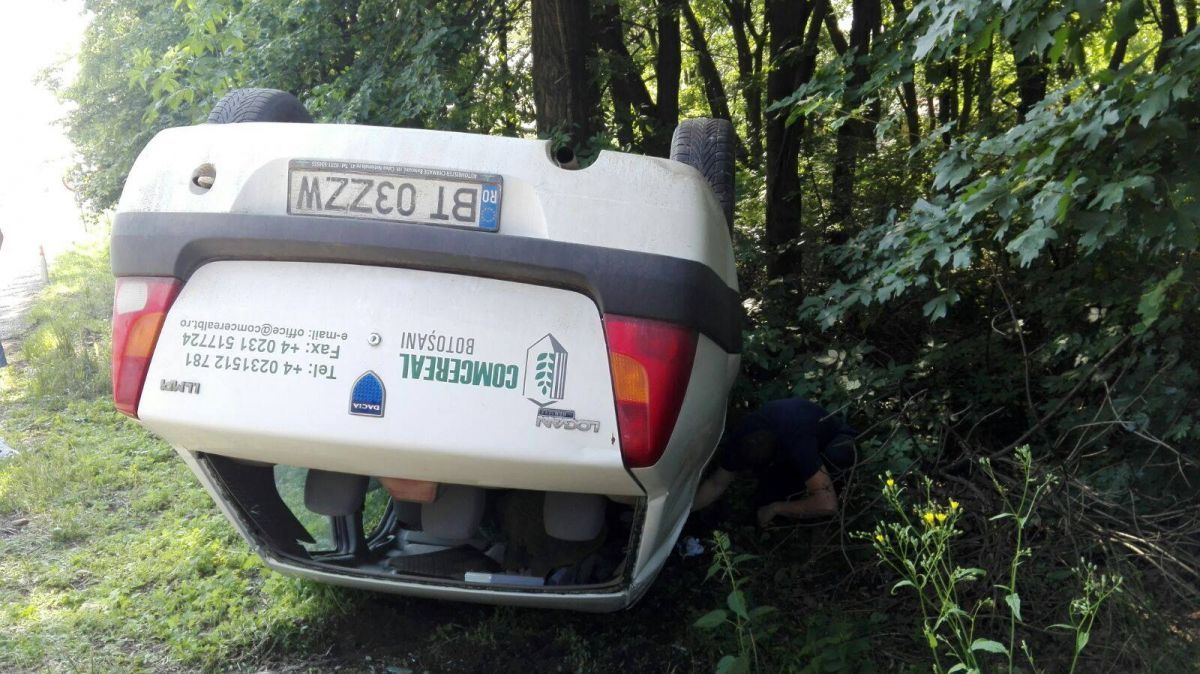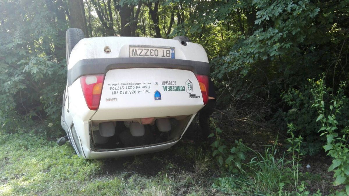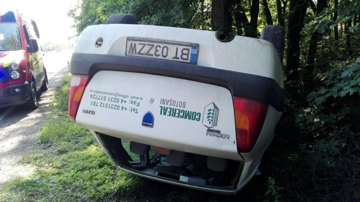 Cu puține minute înainte de ora 10.00, un șofer de 26 de ani s-a răsturnat cu un Logan pe marginea drumului menționat. Acesta se afla la volanul unui autoturism al firmei la care este angajat, venea spre Botoșani și în apropiere de stâna Baisa, a încercat să depășească un TIR. S-a deplasat însă prea mult în stânga drumului, a prins pietriș și a derapat.  Deși a frânat și a reușit să revină pe sensul său de mers, nu a mai putut stăpâni mașina care s-a răsturnat pe partea dreaptă a șoselei rămânând pe cupolă. Din fericire, șoferul TIR-ului a avut prezență de spirit și a reușit să frâneze la timp astfel încât să nu ne izbească în Loganul din fața sa. Cu toate că accidentul este un ul spectaculos, conducătorul auto nu a suferit răni grave. (S.B.)