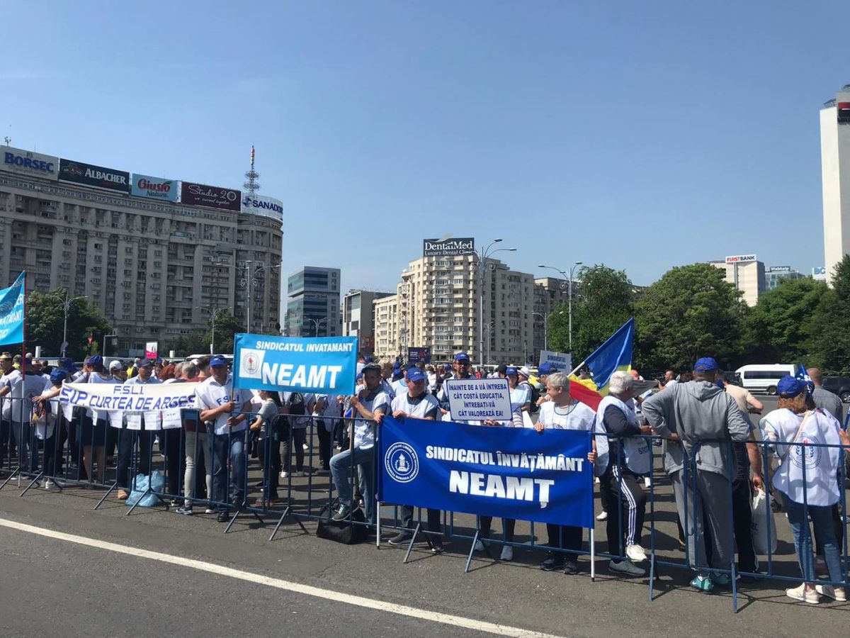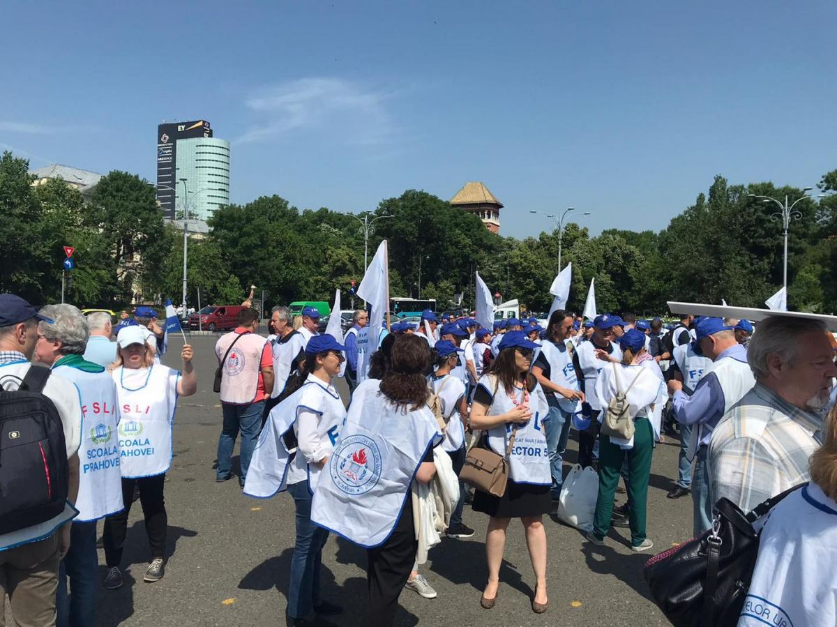 Federația Sindicatelor Libere din Învățământ, Federația Sindicatelor din Educație „Spiru Haret” și Federația Națională Sindicală „Alma Mater“, în numele celor peste 300.000 de salariați din învățământ ale căror drepturi și interese le reprezintă au organizat astăzi un protest în Piața Victoriei.