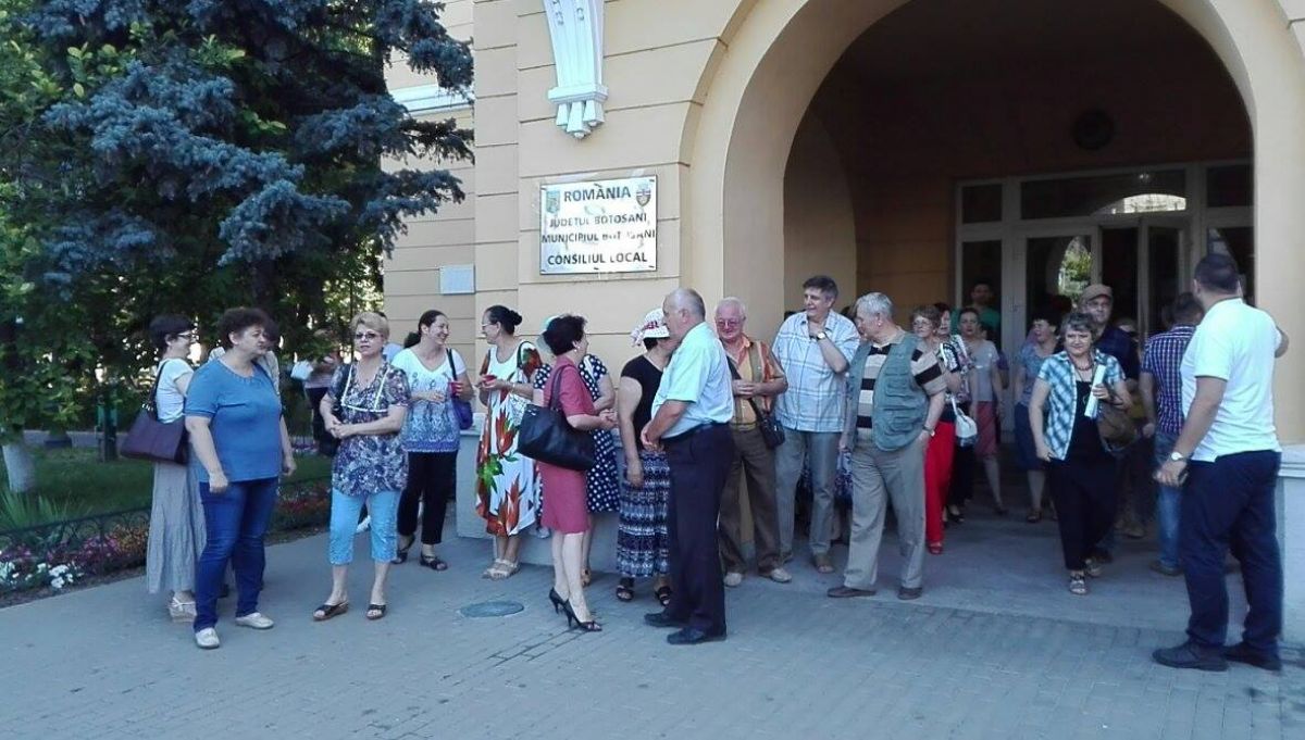 Şi aceasta pentru că funcţionarii au aderat la greva organizată de Federaţia Naţională a Sindicatelor din Administraţie. Salariaţii municipalităţii botoşănene sunt ieşiţi la această oră în Piaţa Revoluţiei. Ei nu poartă pancarte şi nici nu scandează. Sunt câteva zeci, însă sunt aşteptaţi şi alţi funcţionari care lucrează în alte sedii ale instituţiei. (G.E.)