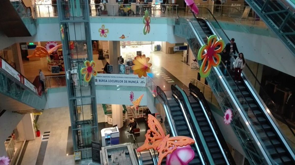 Sute de botoșăneni, tineri sau persoane cu vârste mai înaintate se plimbă printre standurile amenajate în spațiul generos din incinta Uvertura Mall.