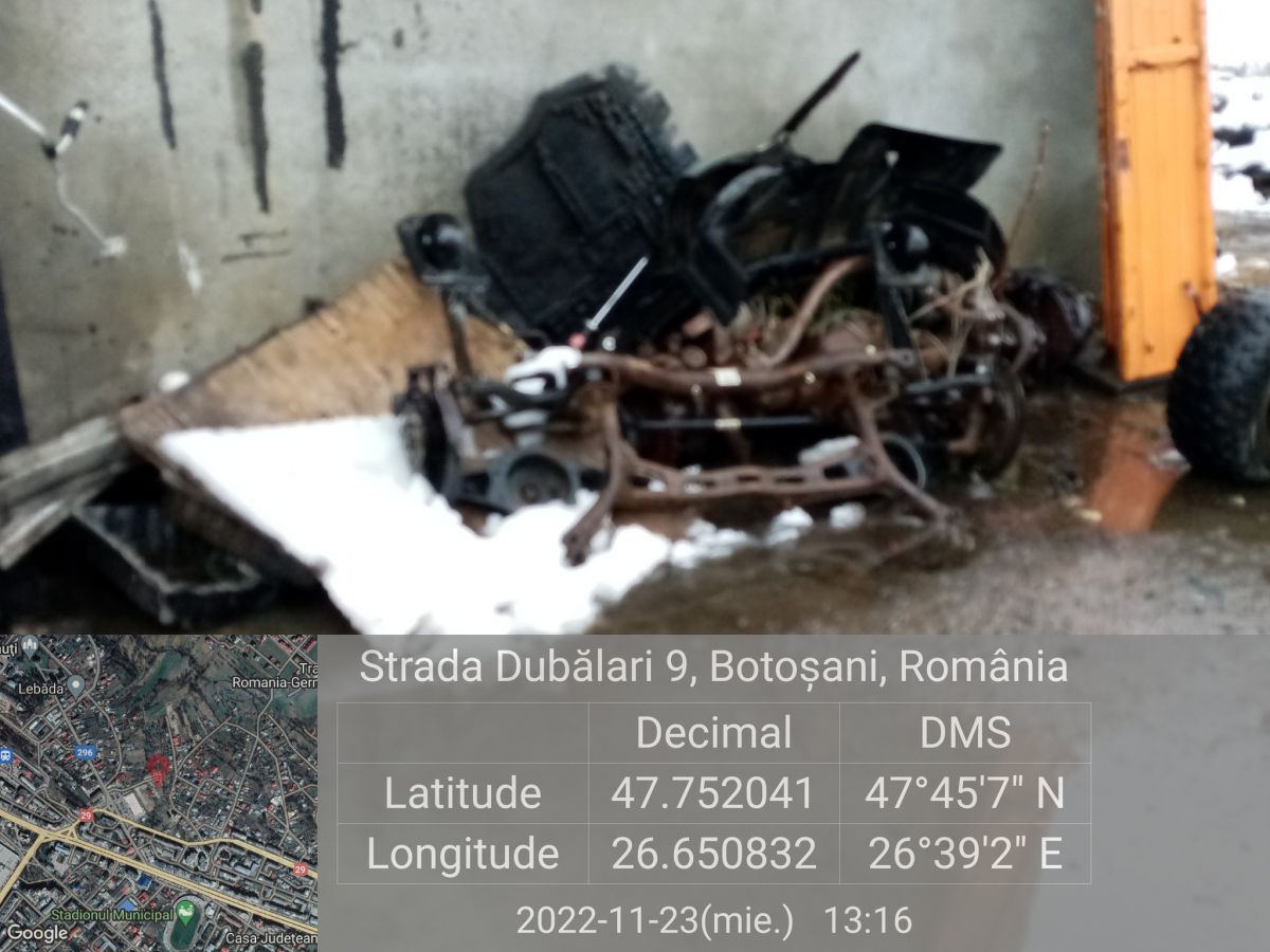 Ca urmare a acțiunilor de inspecție și control în vederea verificării și soluționării unei reclamații privind arderi de anvelope uzate și mase plastice, pe amplasamentul sesizat a fost identificat un atelier de reparații auto, precum și deșeuri diverse- piese auto rezultate  din activitatea service-auto.
