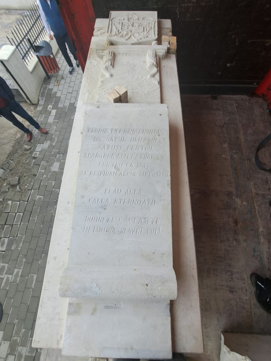 Monumentul a fost adus la Hlipiceni, Arhim. Ciprian Grădinaru deplasându-se personal, de la București, pentru a asista și coordona direct la montare acestuia.