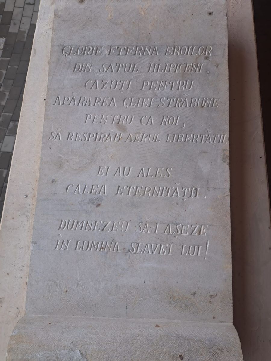 ”Glorie eternă eroilor din satul Hlipiceni, căzuți pentru apărarea gliei străbune pentru ca noi să respirăm aerul libertății. Ei au ales Calea Eternității. Dumnezeu să-i așeze în Lumina Slavei Lui!”, scrie pe monumentul făurit de familia de meșteri Lozan, din Republica Moldova, cu implicarea și cheltuiala directă a părintelui Arhim. Ciprian Grădinaru.