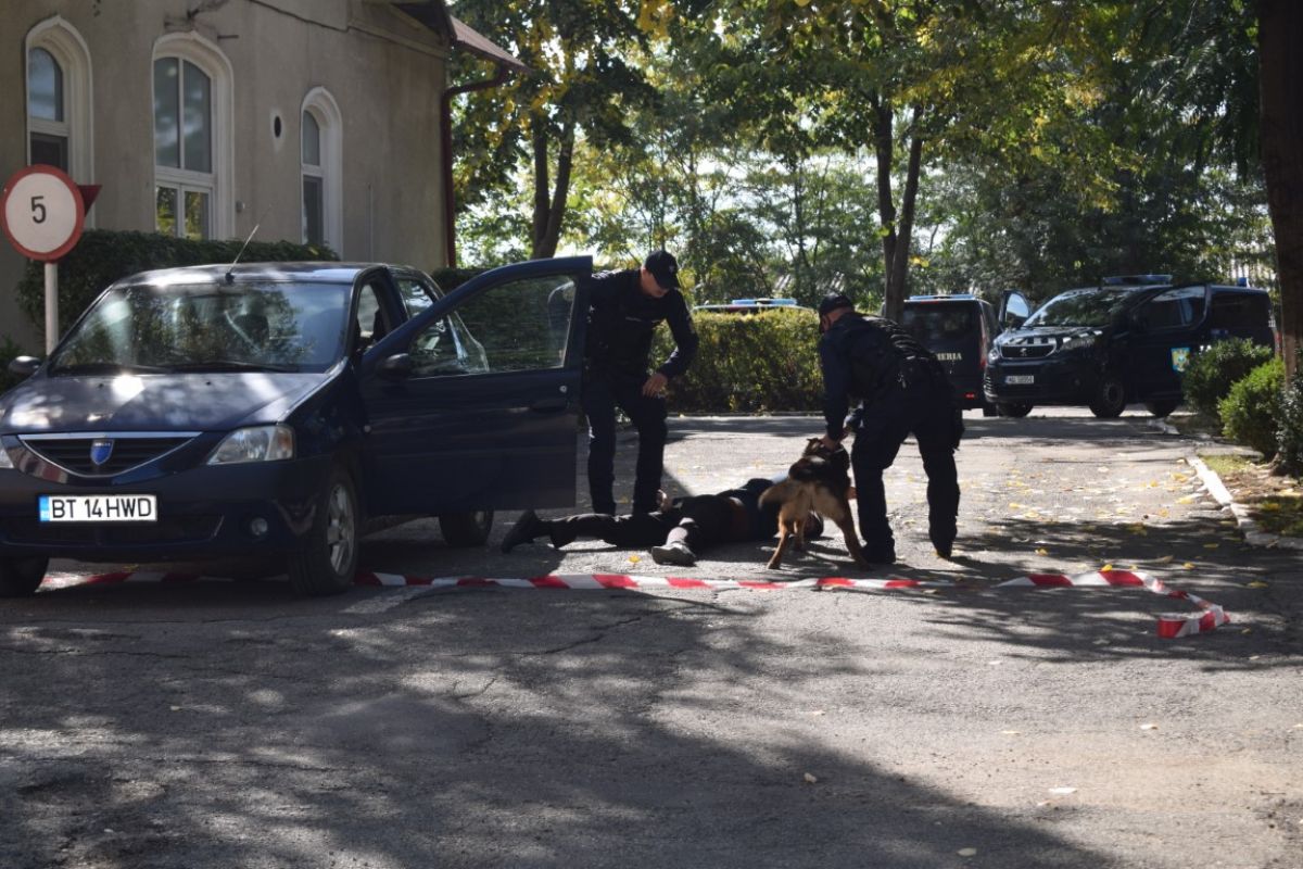 Echipajele Grupei de Acțiuni Speciale și Intervenție Antiteroristă dar și Grupei Conductori Câini de Serviciu ajutate de doi elevi de la Școala Fălticeni care se află în practică la IJJ Botoșani au participat la demonstrație.