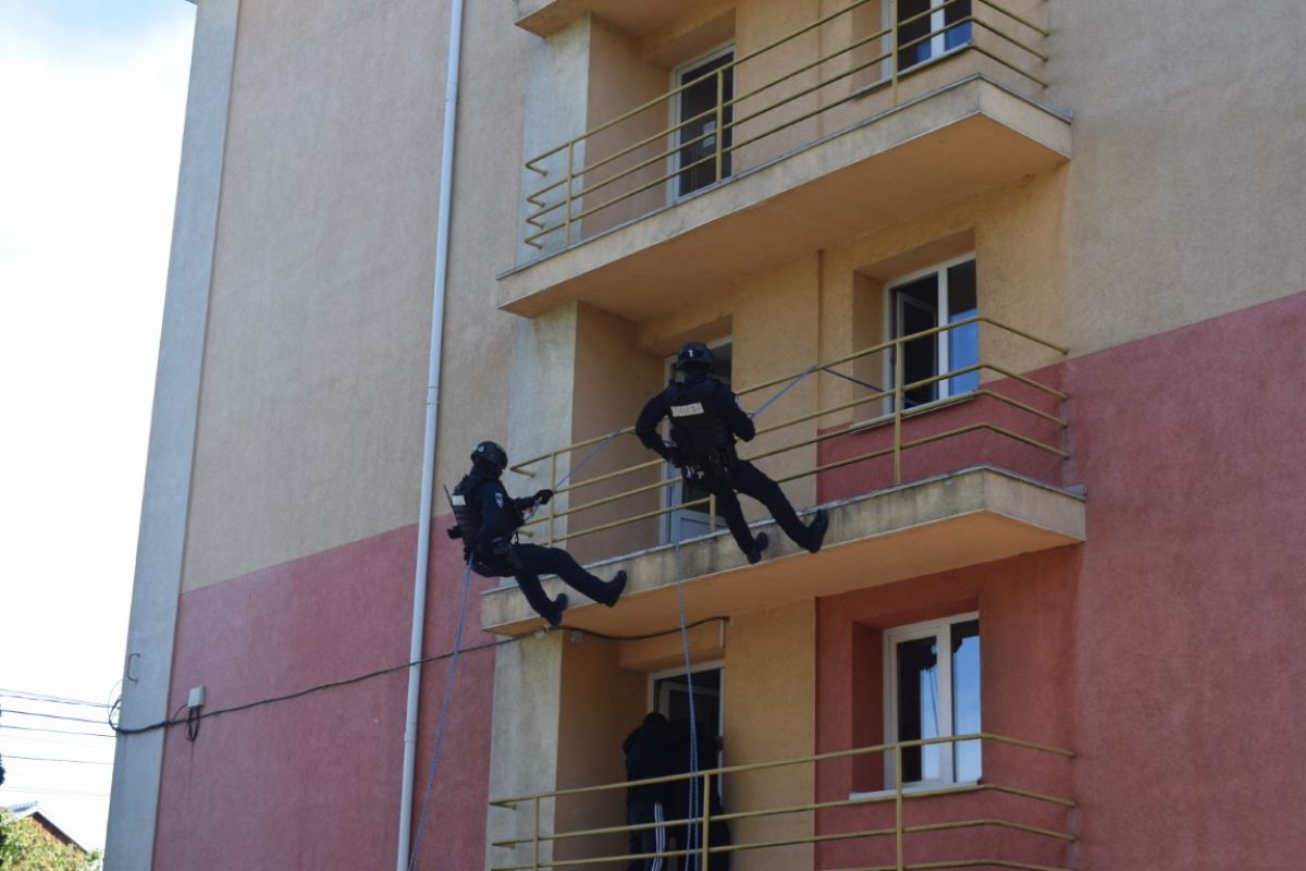 Celălalt infractor a reușit să scape și s-a baricadat într-o clădire unde a luat un ostatic. Grupele antiteroriste au acționat cu ajutorul frânghiilor, lansându-se în balconul țintă de la un etaj superior.