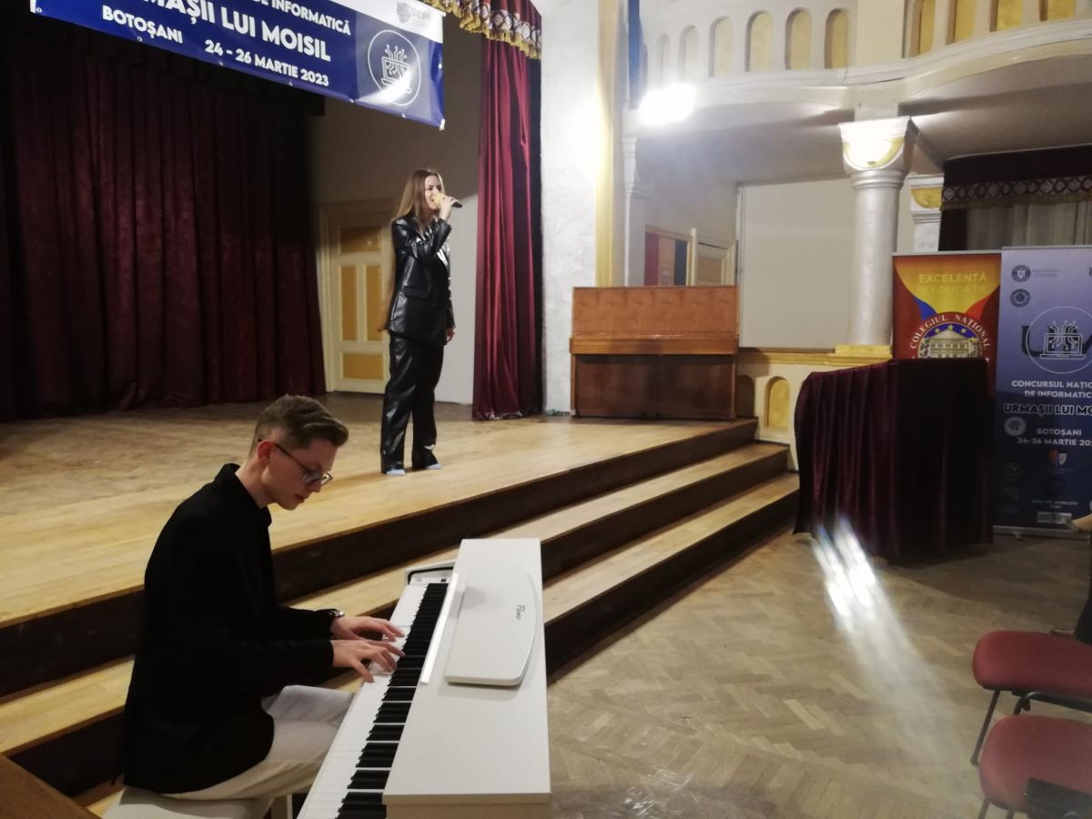 Concursul de Informatică “Urmaşii lui Moisil” a fost oficial deschis cu intonarea Imnului României, de către Elisabeta Șeremet, acompaniată la pian de colegul ei, Adrian Mircescu, ambii elevi ai Liceului de Artă ”Ștefan Luchian” Botoșani. Adrian Mircescu a primit în avans aplauze pentru evoluția sa de la ”Românii au talent”.