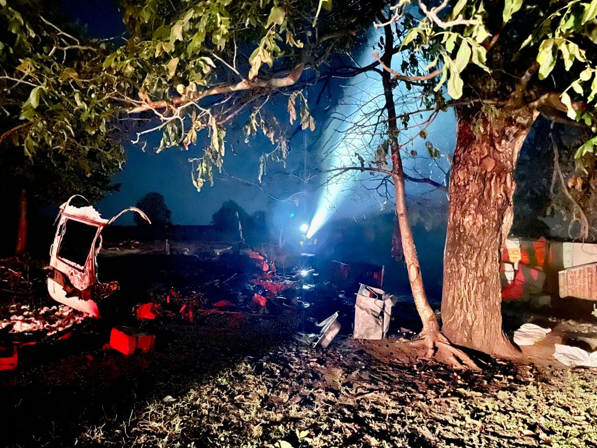 Flăcările au cuprins întreg ansamblul și exista posibilitatea să se extindă la arborii din imediata vecinătate.