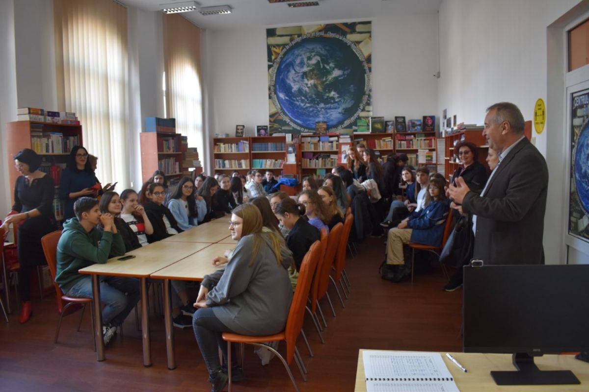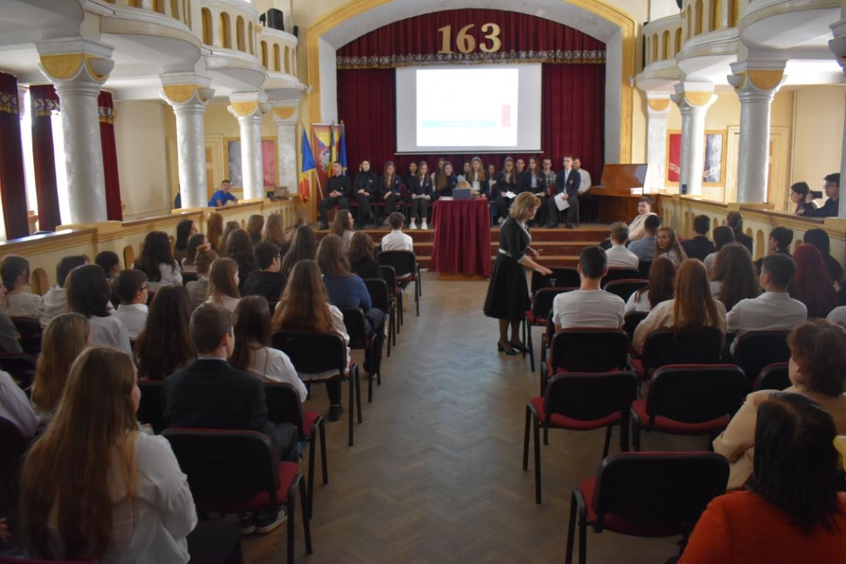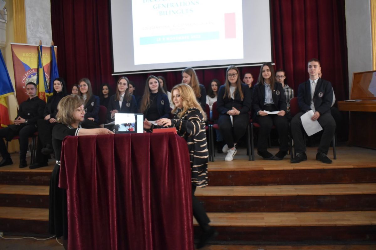 În paralel, în aula colegiului erau adunate clasele de bilingv franceză care se aflau într-o transmisiune cu elevii și profesorii de la colegii din Iași și Suceava, într-un proiect interdisciplinar pentru clasele a XI-a.