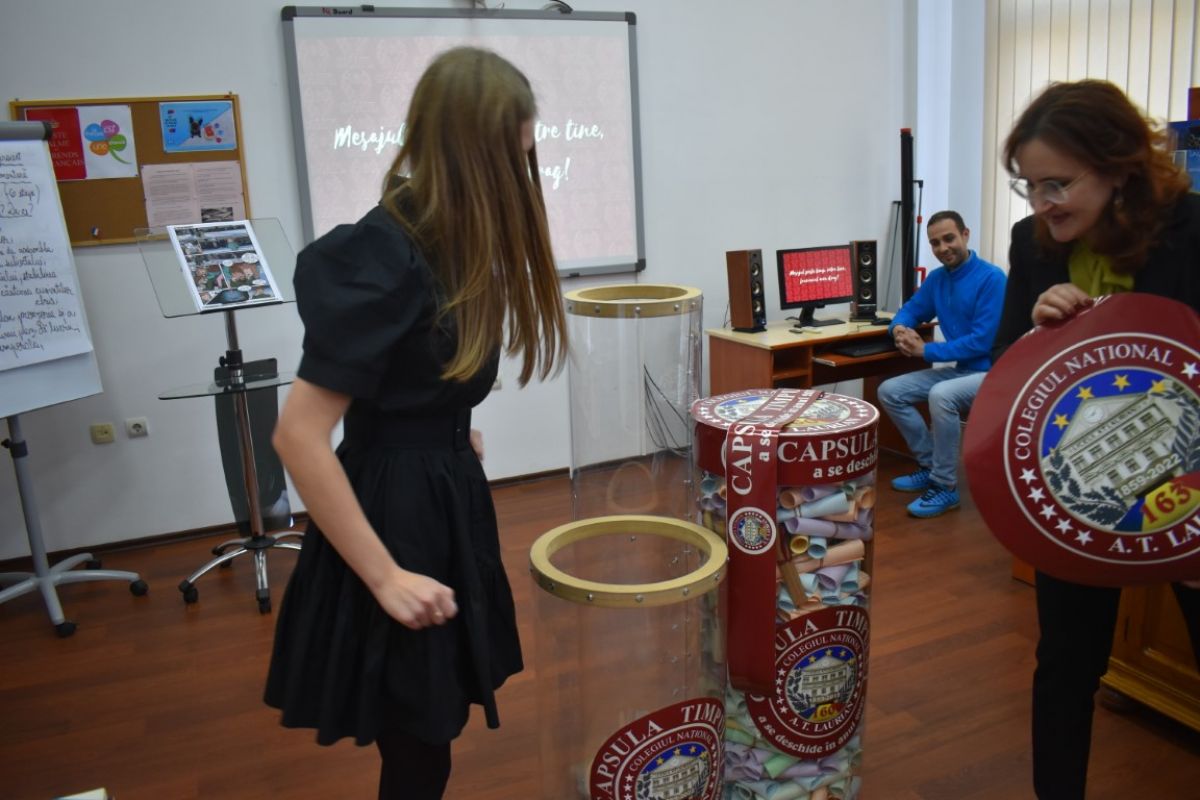 Directorul Mihaela Prăjinariu a explicat ce înseamnă această capsulă a timpului pentru care elevii au fost provocați să-și scrie visurile pe hârtie pentru a vedea peste 10 ani dacă s-au îndeplinit întocmai: „Dacă vă așterneți visurile pe hârtie se spune că ele se îndeplinesc mai ușor. Și atunci provocăm elevii, de acum 3 ani, să-și pună visurile pe hârtie, cu colaborarea profesorilor de limba română, limba franceză sau engleză”.