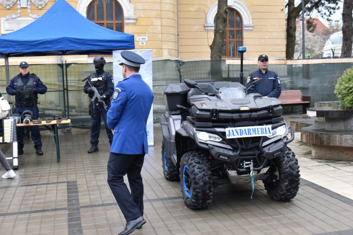 Ulterior au vizitat standurile de prezentare a mijloacelor auto, a tehnicii din dotare și au primit informații privind oferta de școlarizare în instituțiile militare de învățământ care pregătesc personal pentru nevoile Jandarmeriei Române.