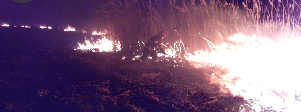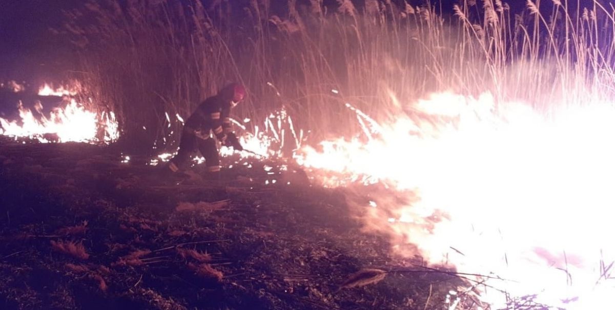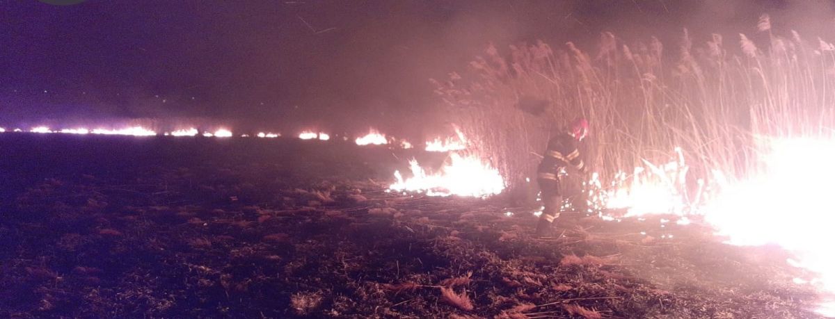Aproximativ un hectar de vegetație uscată și stuf au ars, noaptea trecută, pe un câmp de la marginea localității Vlăsinești.