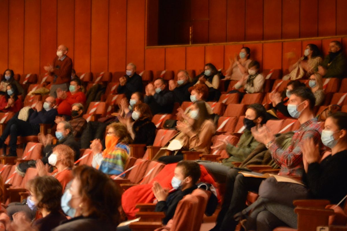 Sala Filarmonicii ”George Enescu” a primit, vineri, parcă și mai mult public decât în săptămânile anterioare. Purtând măști, respectând normele impuse, presărați printre scaunele ”interzise” cu bandă, melomanii nu renunță la seara de muzică simfonică.
