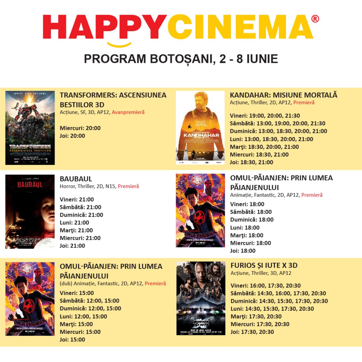 Cinefilii botoșăneni sunt așteptați la Happy Cinema pentru a urmări cele mai noi filme.