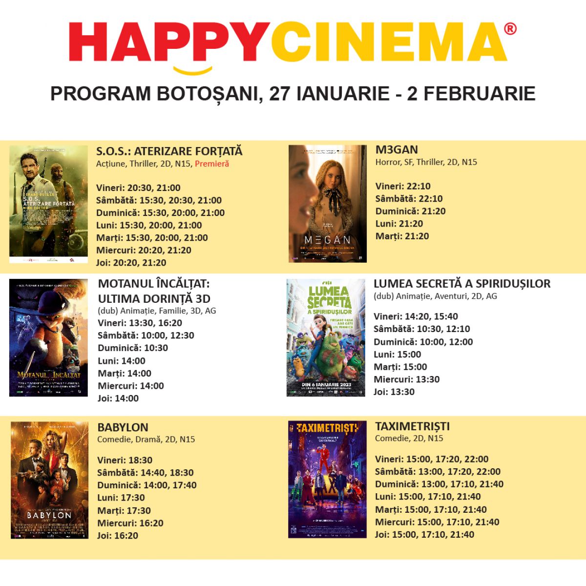 Cinefilii botoșăneni sunt așteptați începând de astăzi la Happy Cinema.