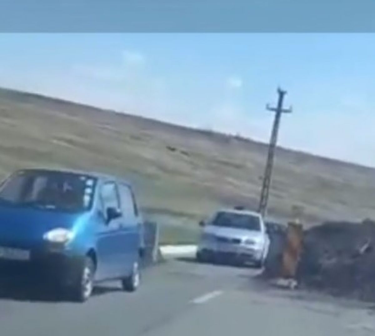 Comuna Stăuceni, judeţul Botoşani. Drum asfaltat recent, o plăcere să mergi cu maşina. Asta până când dai de o baricadă imensă de pământ şi ciment, cu o gaură fix în mijloc. Spaţiul e cât să se treacă o maşină. Una mică însă.