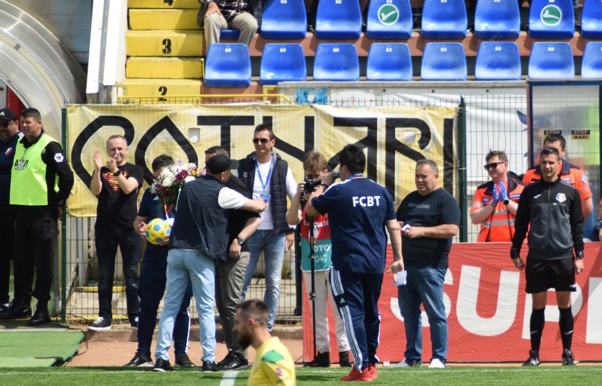 Clubul a marcat despărțirea de antrenor oferindu-i un buchet de flori înaintea meciului.