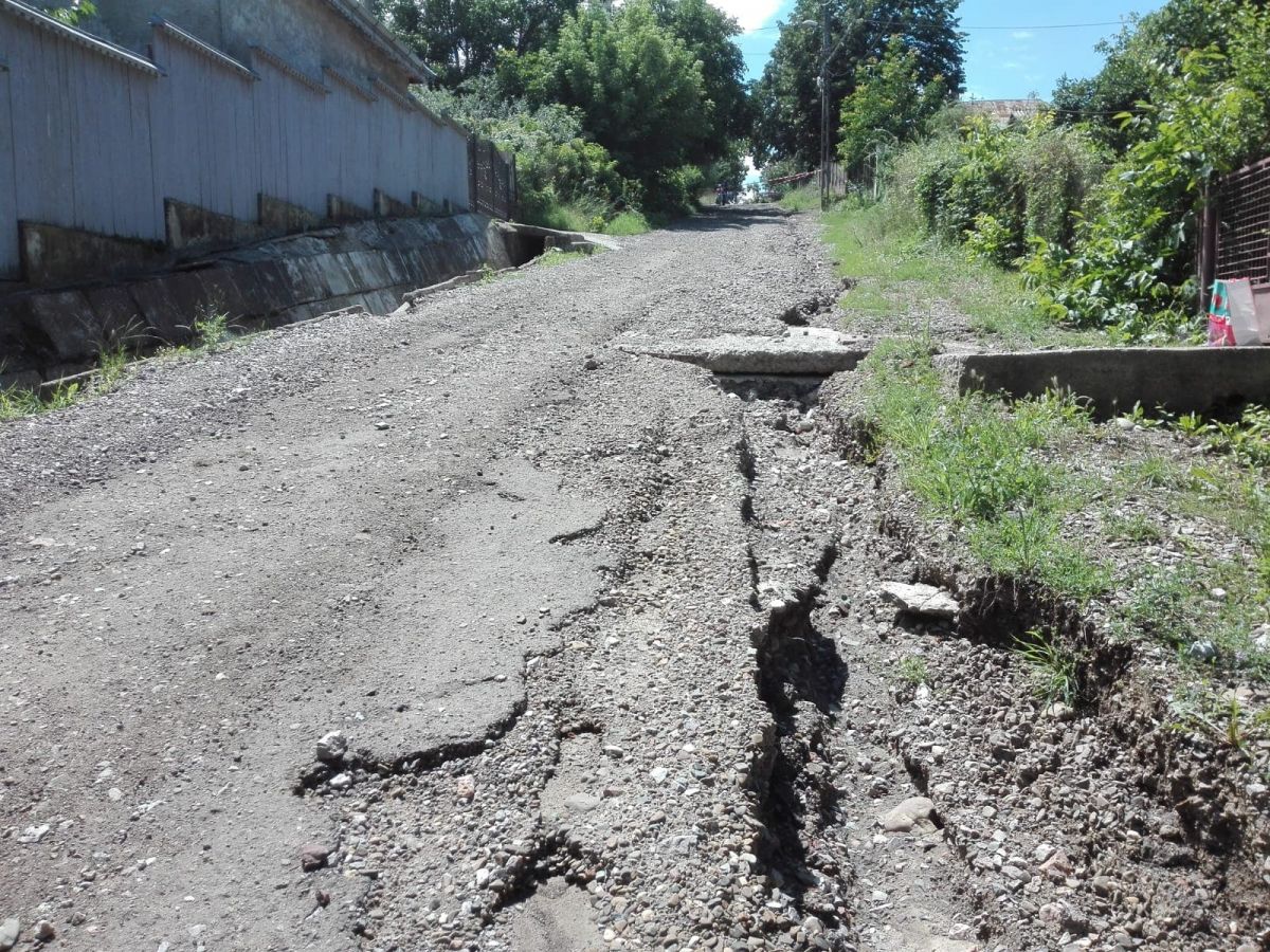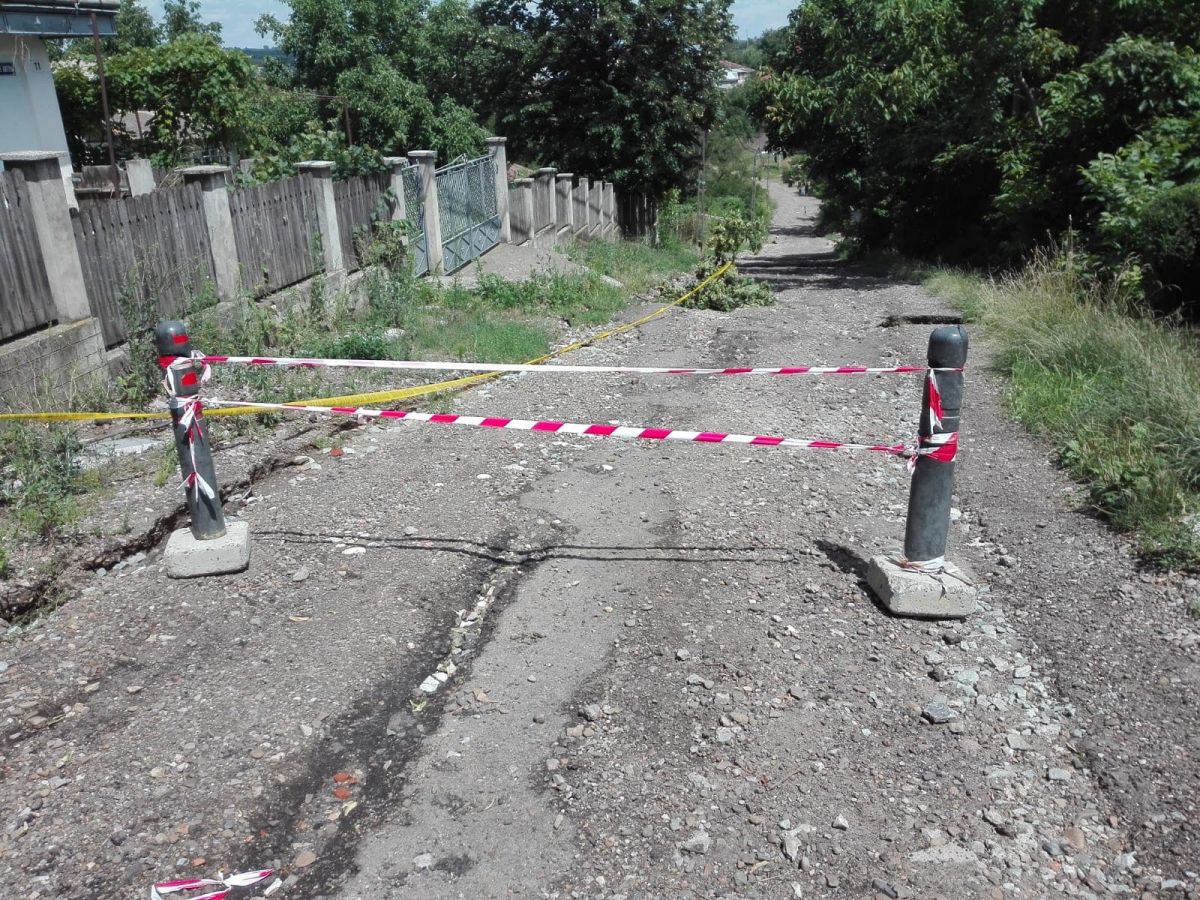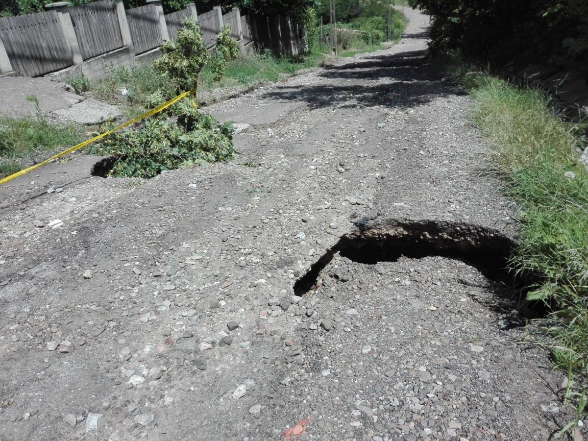 În urma precipitațiilor abundente au avut loc mai multe surpări ale străzii care pot prezenta pericol pentru locuitorii din zonă.