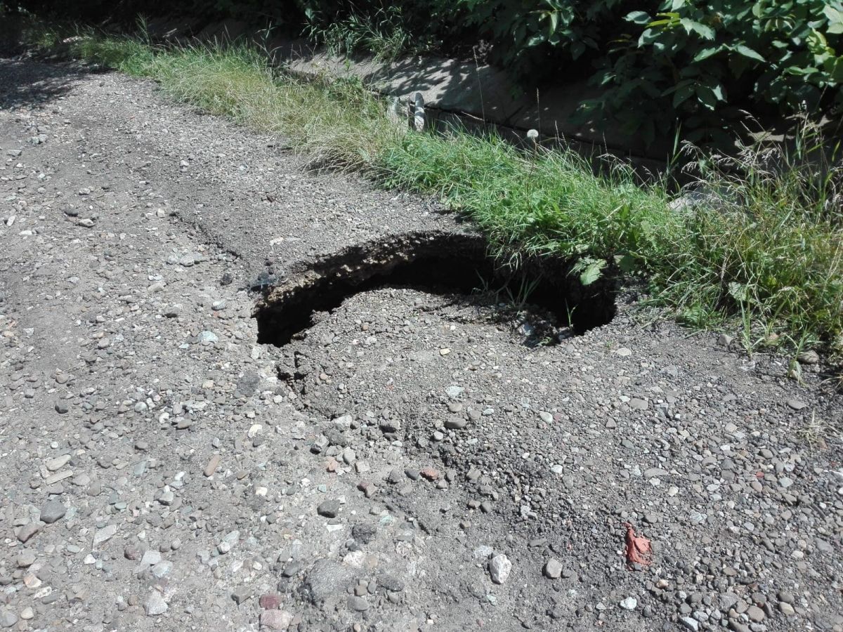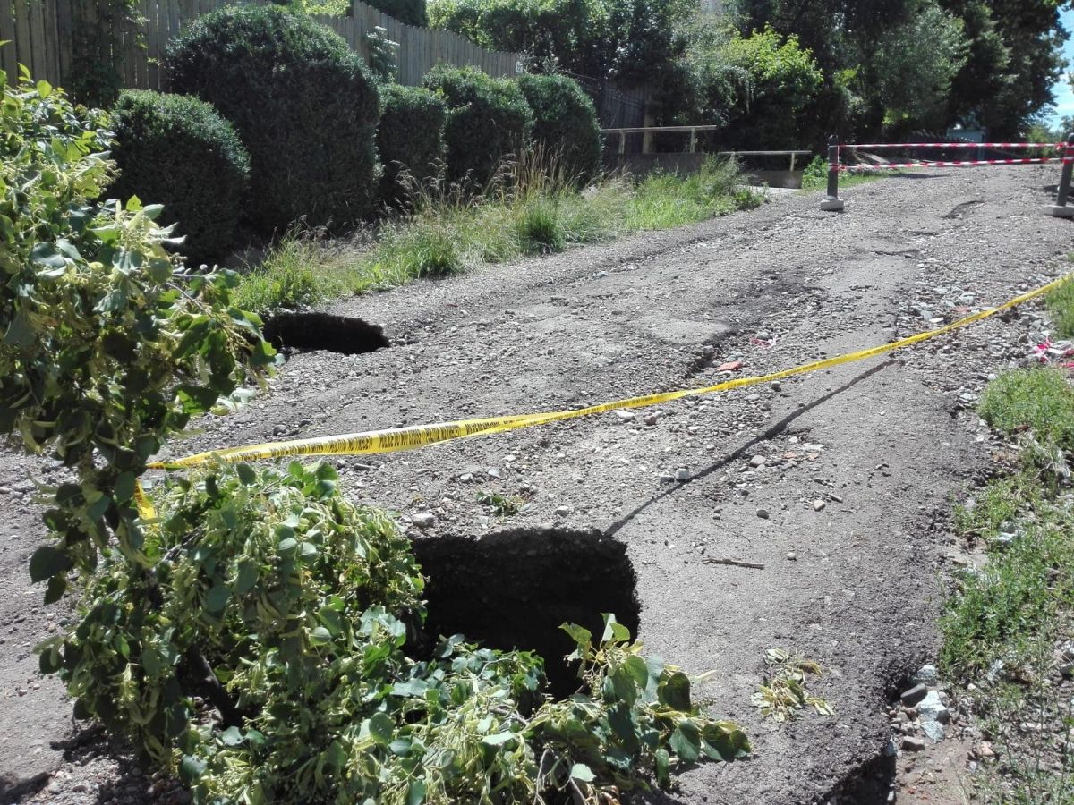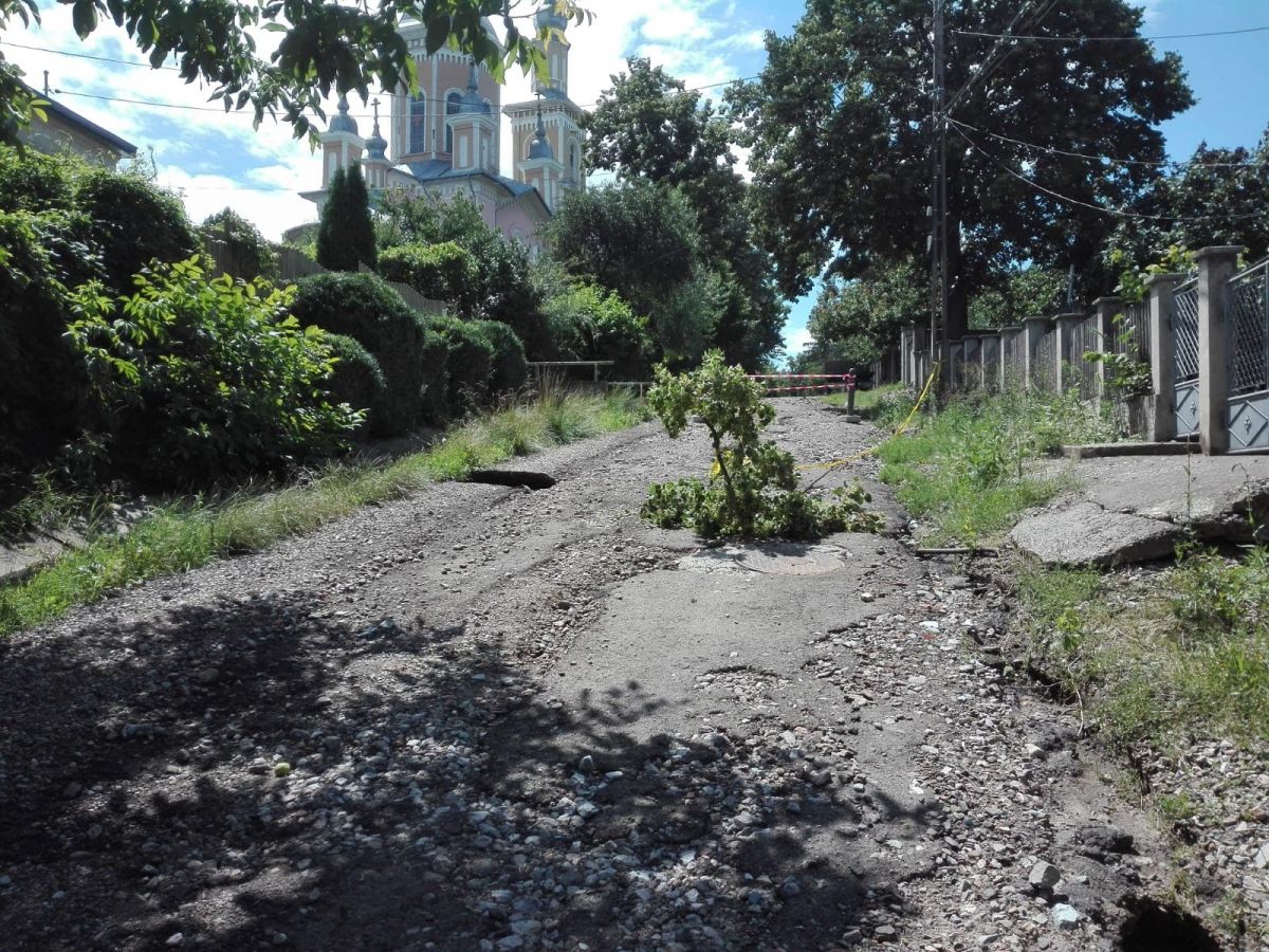 În urma precipitațiilor abundente au avut loc mai multe surpări ale străzii care pot prezenta pericol pentru locuitorii din zonă.