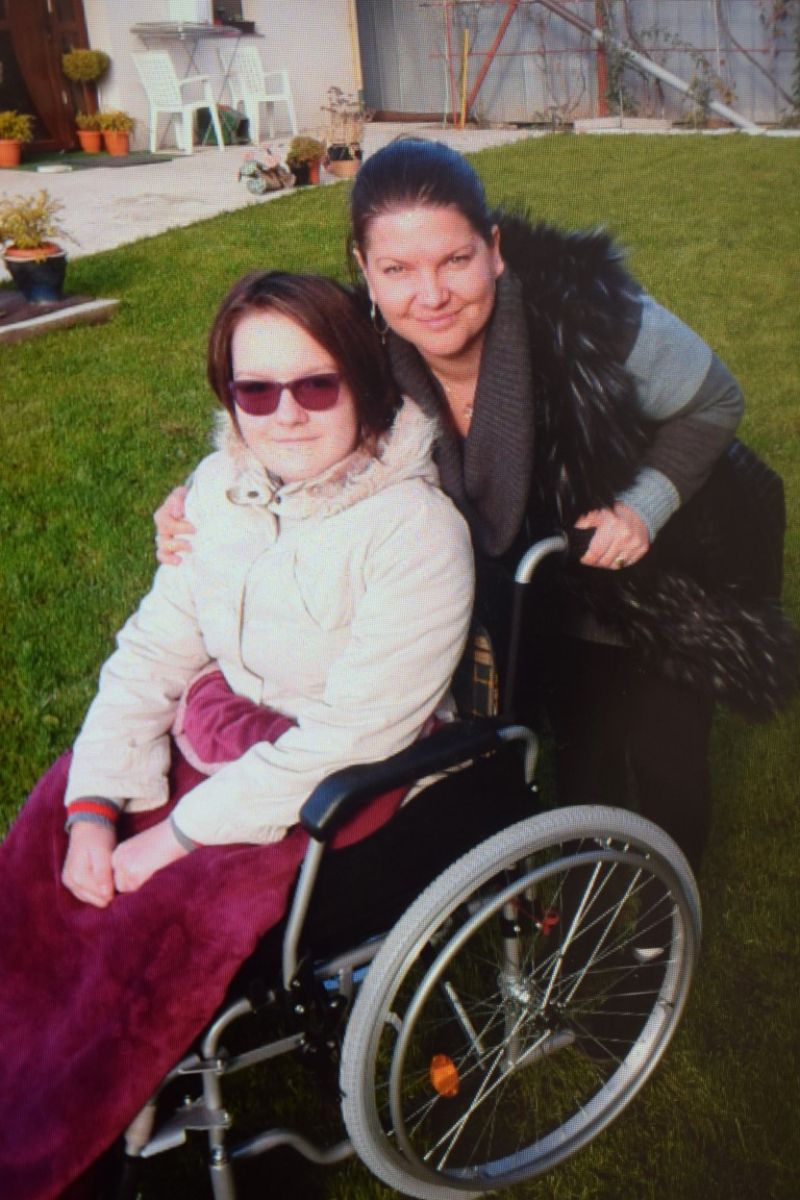 Maria s-a născut cu o malformație la coloană – spina bifidă- iar după operația de la 9 zile de viață a rămas paralizată de la mijloc în jos.