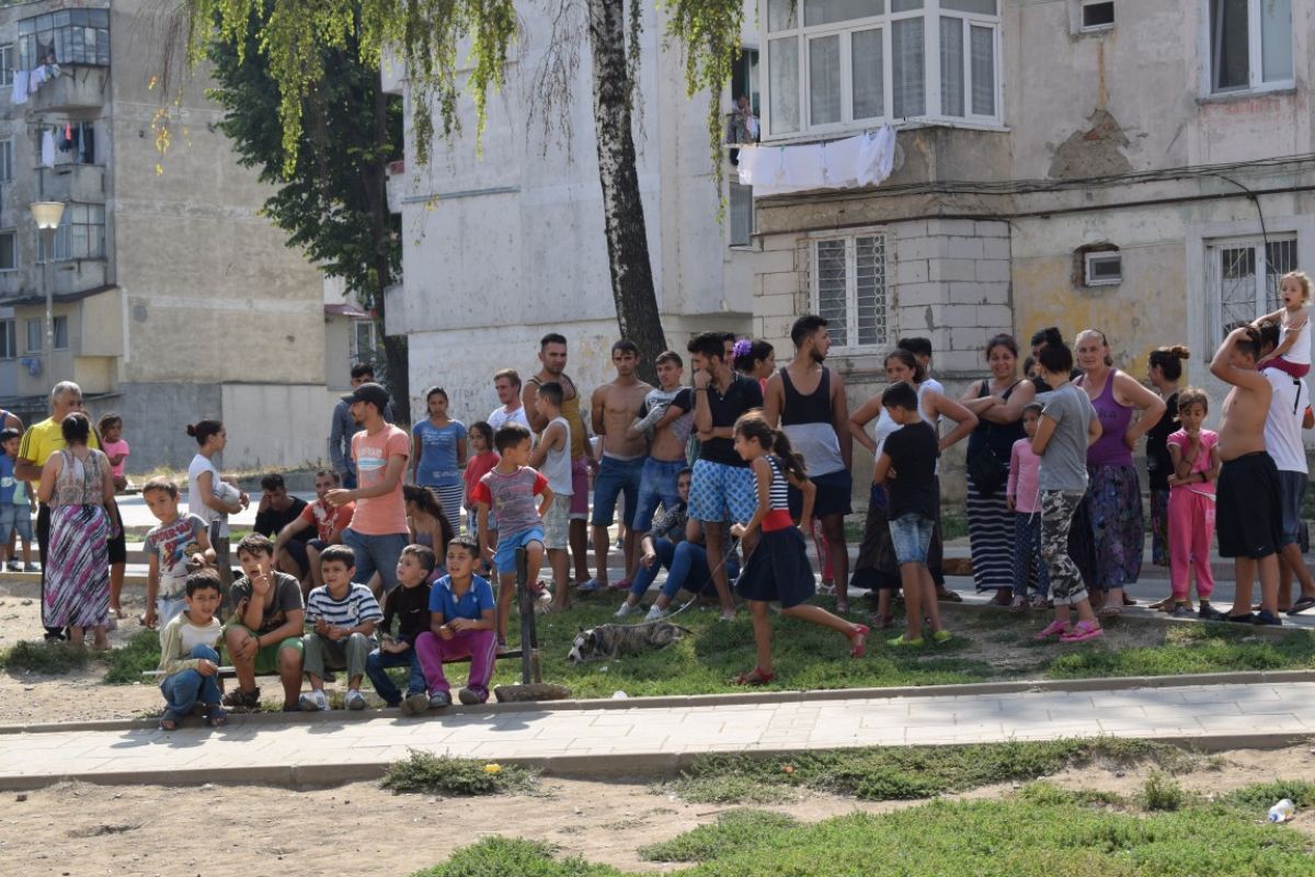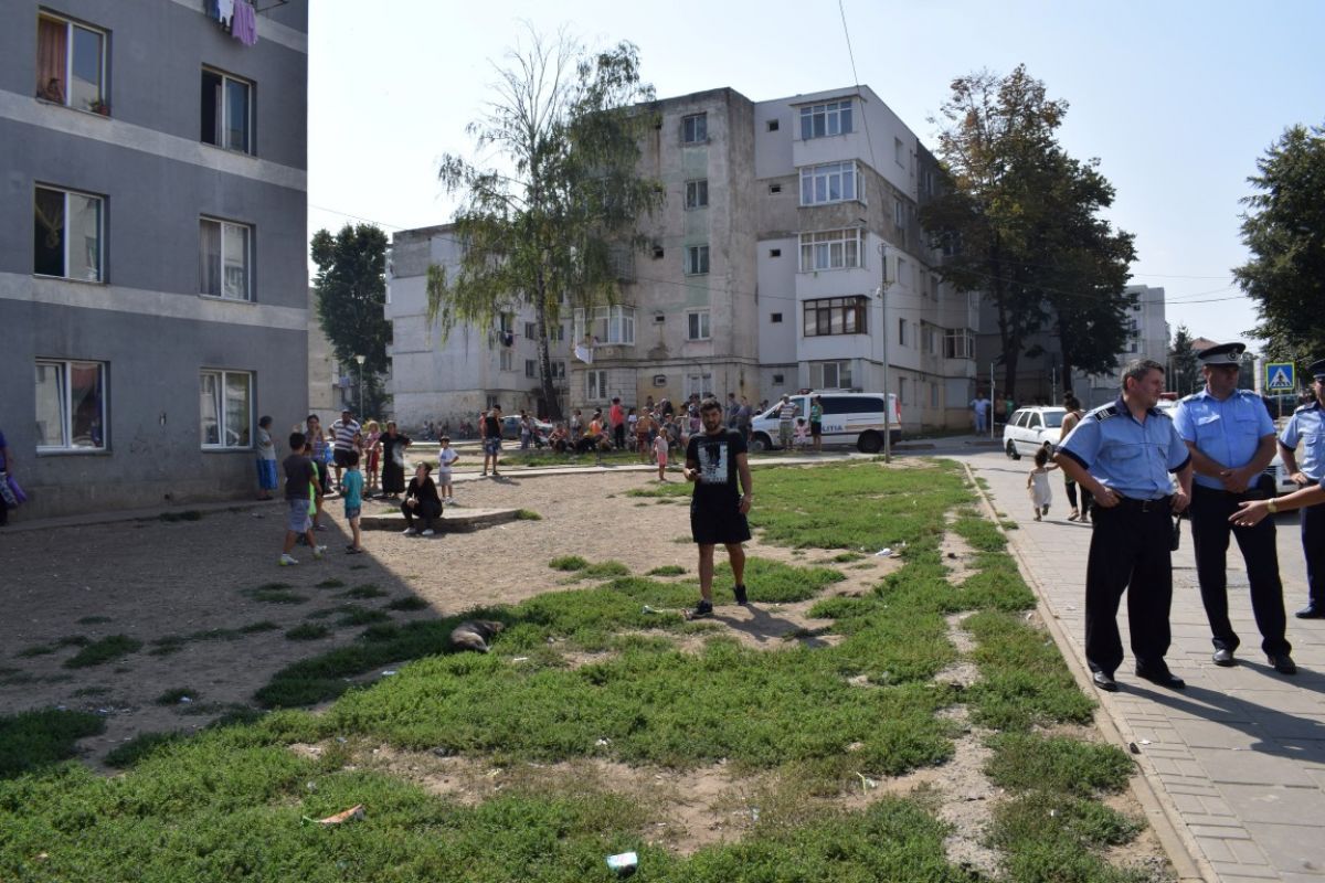 Și ca de obicei când în zonă este vreo acțiune în desfășurare, minoritarii s-au adunat ca la spectacol. Unii se hlizeau la cei din trupele speciale și la aparatele de fotografiat, alții mai nervoși strigau că nu doresc să fie filmați. Una dintre fete și-a ridicat fusta în cap și și-a arătat ambele părți pentru a se face mai bine înțeleasă.