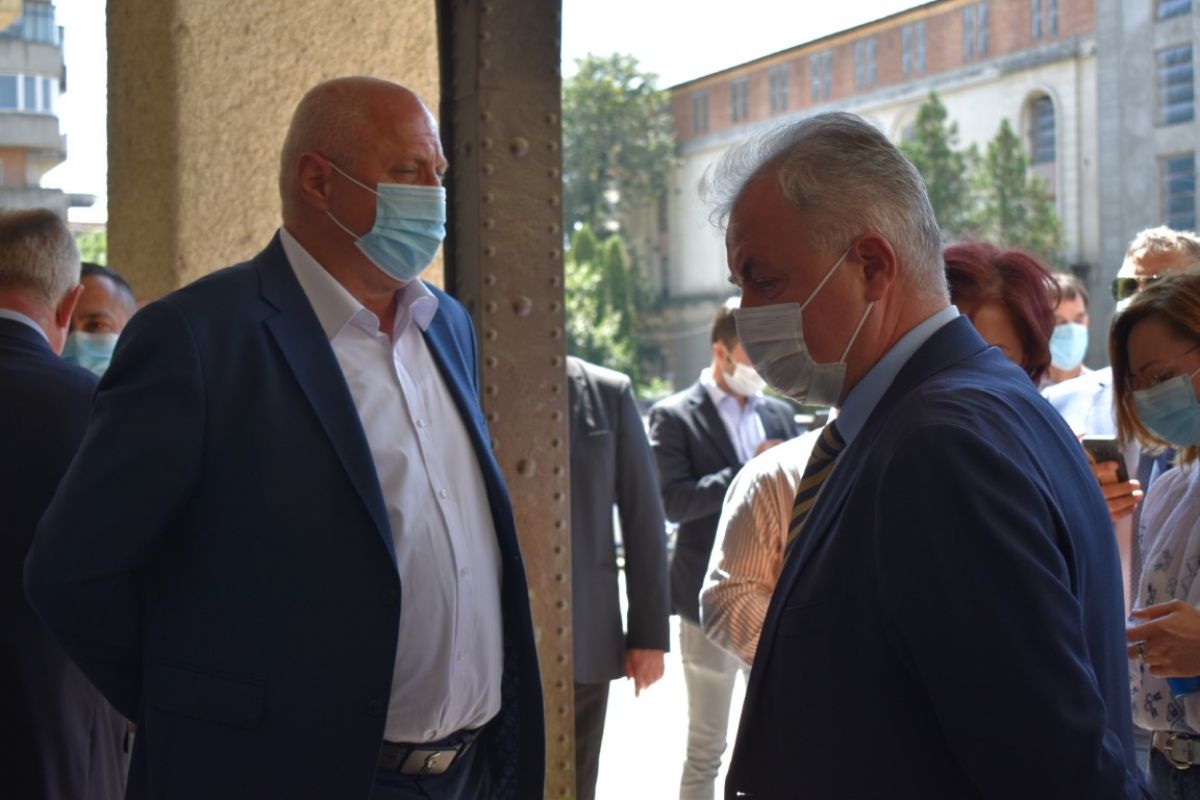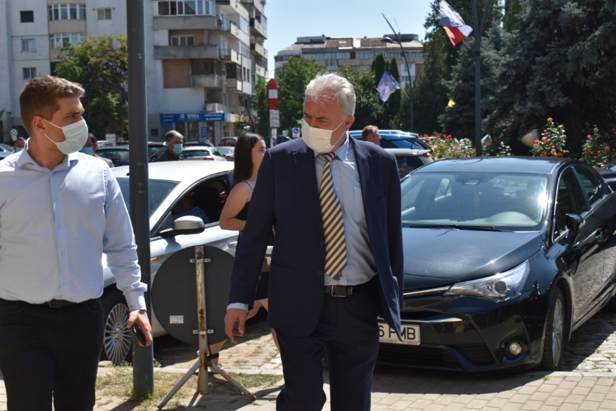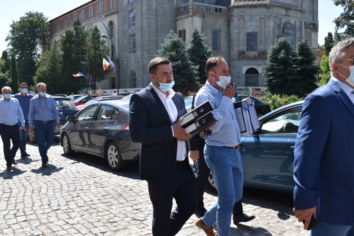 Mai apoi s-au îndreptat către Biroul Electoral de Circumscripție, unde de asemenea, au intrat cu dosarele cei doi candidați: Costel Șoptică și Cătălin Flutur.