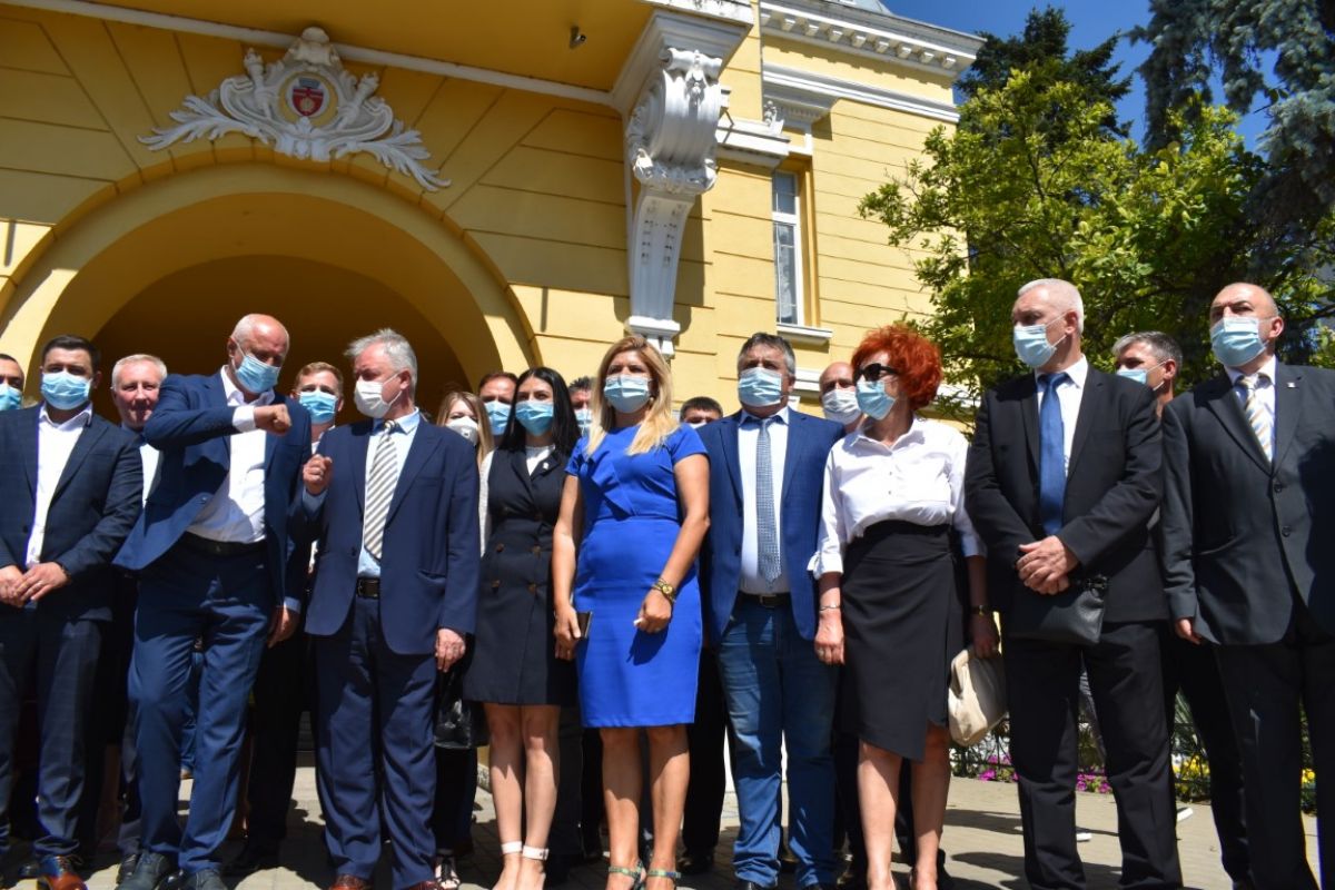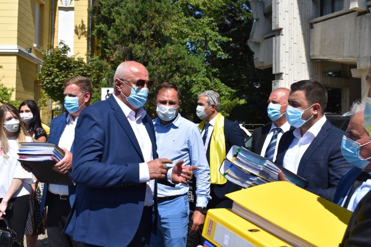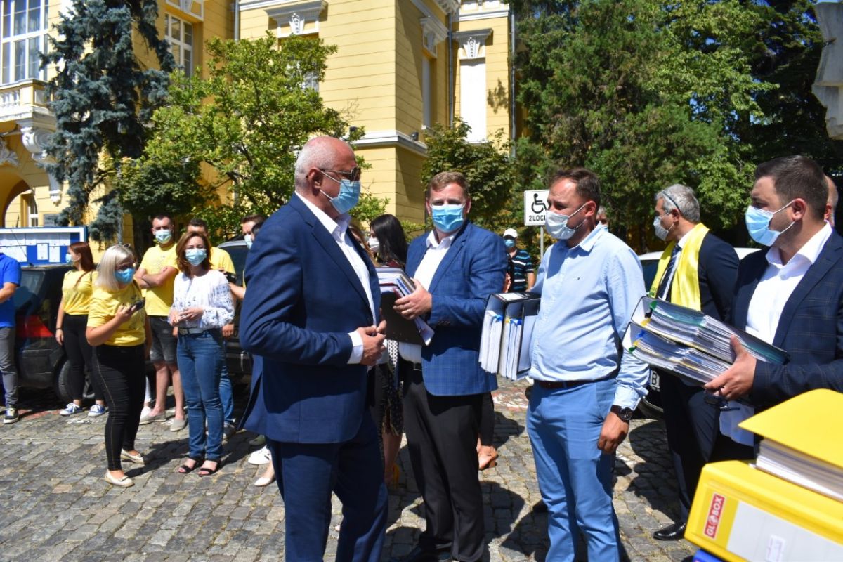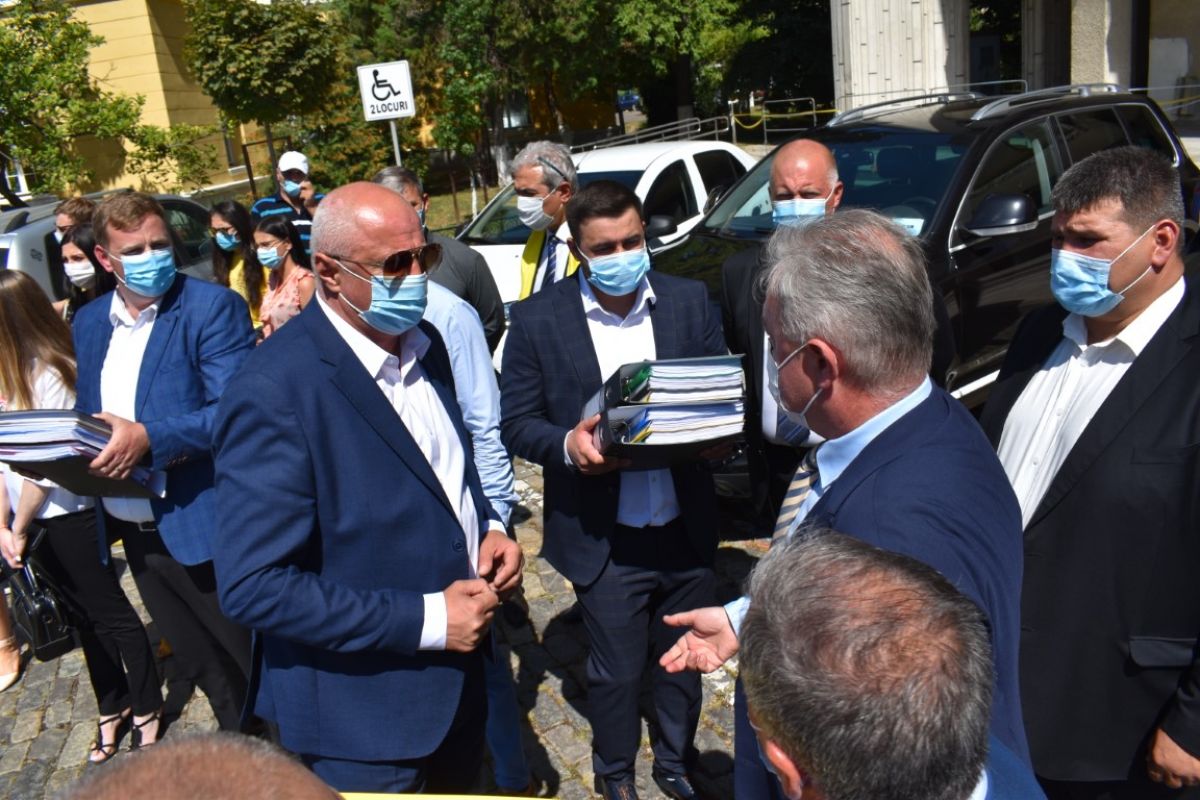 Costel Șoptică a sosit la Biroul Electoral Județean însoțit de tinerii său din organizație dar și de colegi primari.