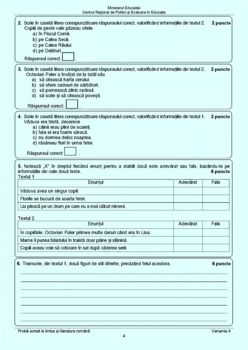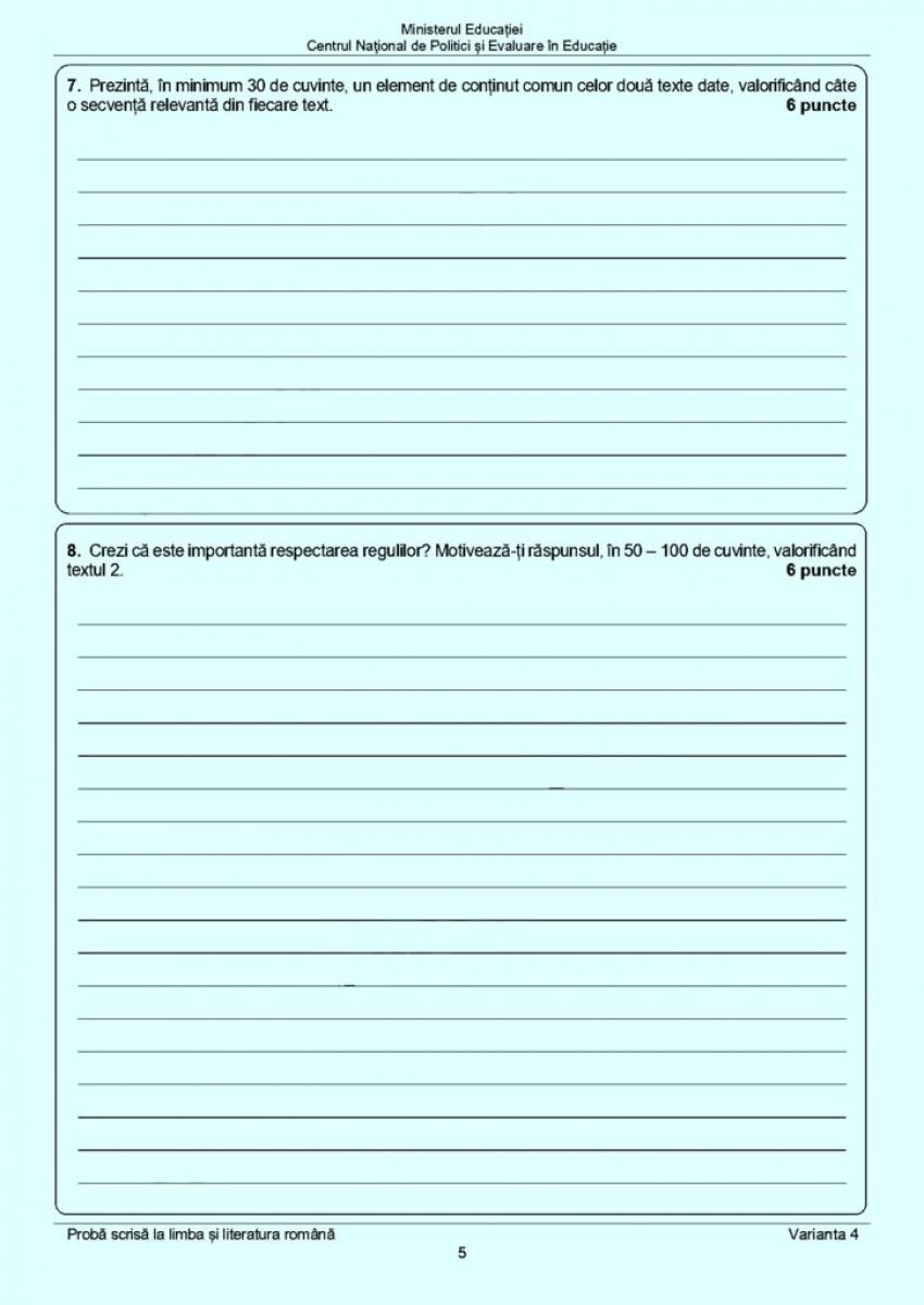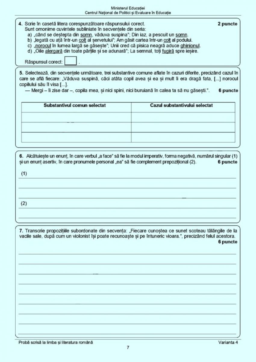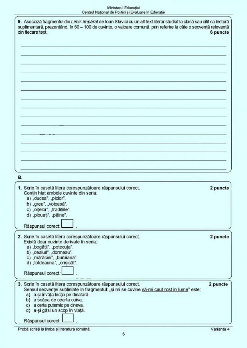 Subiectele de la Limba și literatura română din cadrul examenului pe care absolvenții ciclului gimnazial l-au susținut astăzi, 19 iunie 2023.
