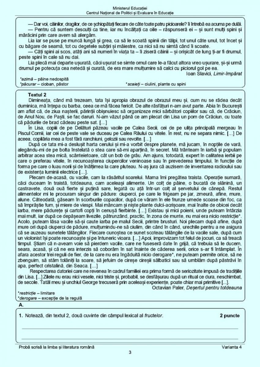 Elevii de clasa a VIII-a au avut la Evaluare Naţională la limba română două texte suport şi anume: "Limir- Împărat" de Ioan Slavici şi "Deşertul pentru totdeauna" de Octavian Paler, scrie Antena 3 CNN.