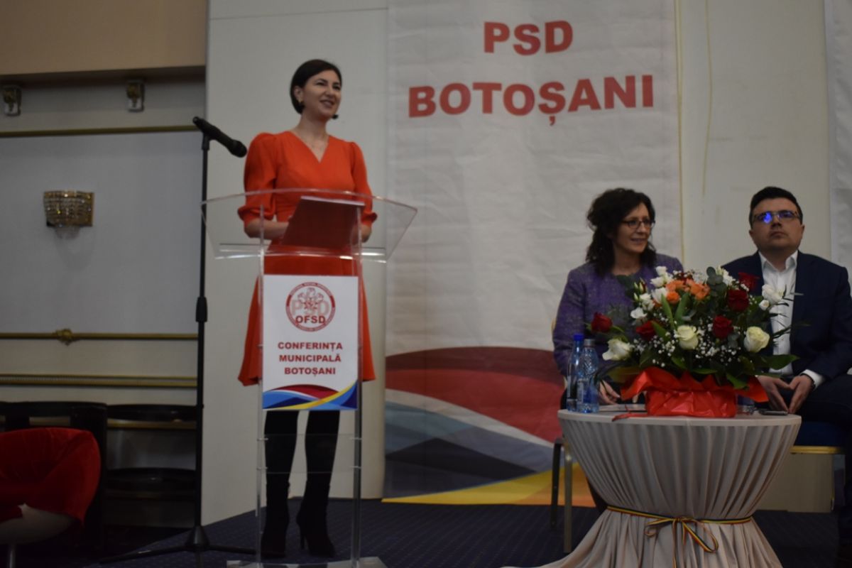A mulțumit apoi Doinei Federovici, președinte național OFSD, ministrului Marius Budăi, absent însă de la conferință și întregii conduceri a PSD Botoșani ”pentru că au știu să implice femeile în viața politică și au oferit sprijinul necesar pentru ca și noi să ne simțim împlinite în acest domeniu”.