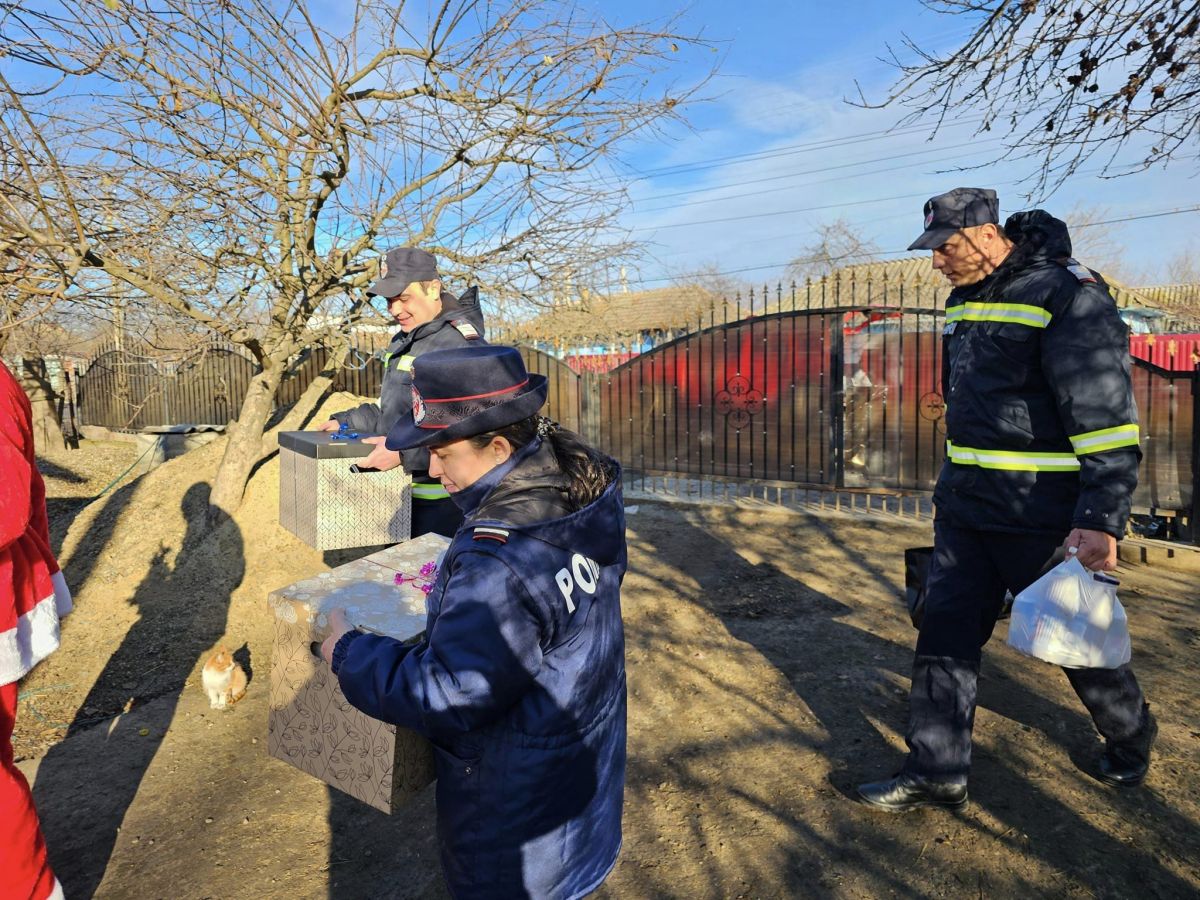 Salvatorii de la Stația Săveni, care au intervenit pentru a stinge incendiul, nu au uitat de necazul acestor oameni.