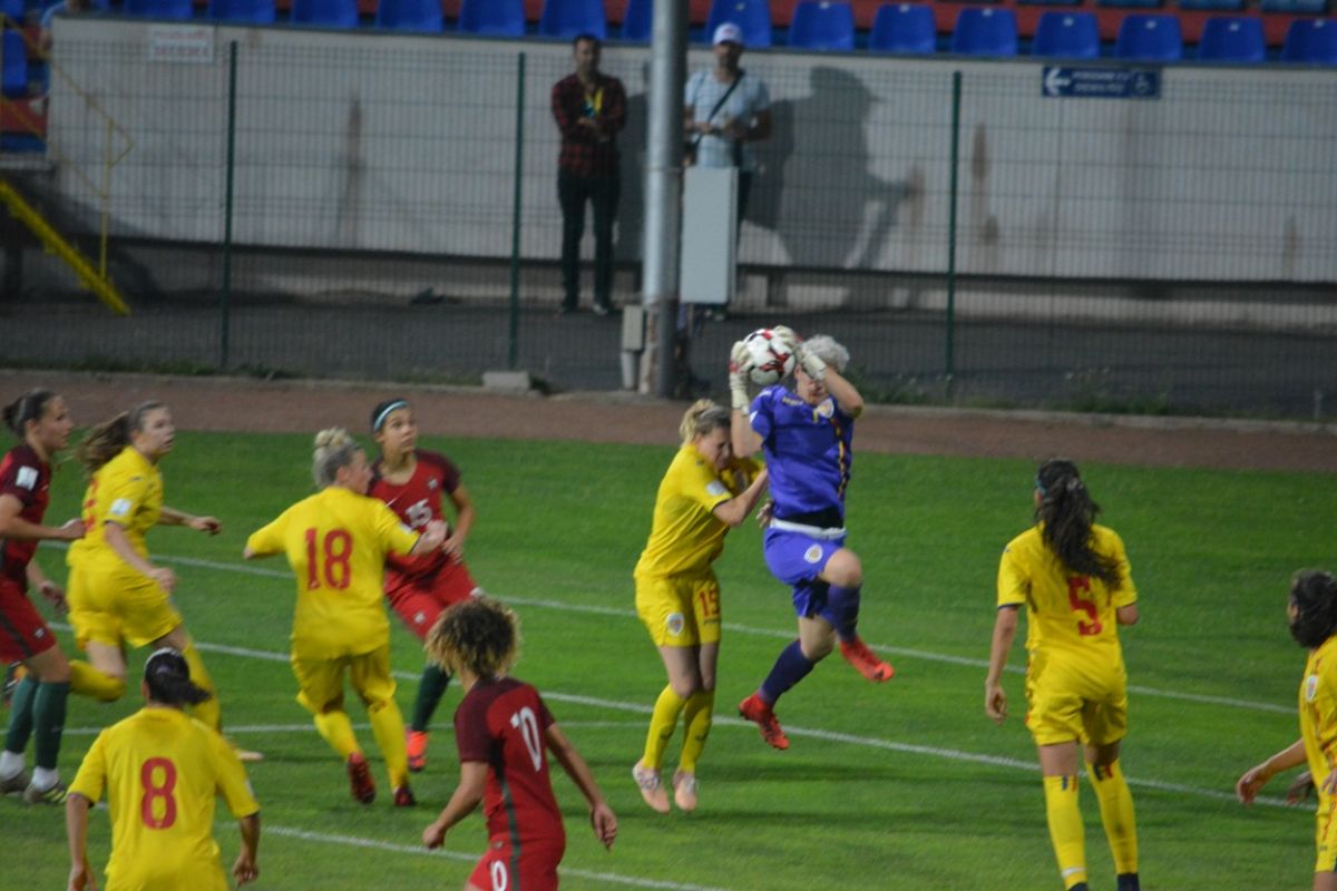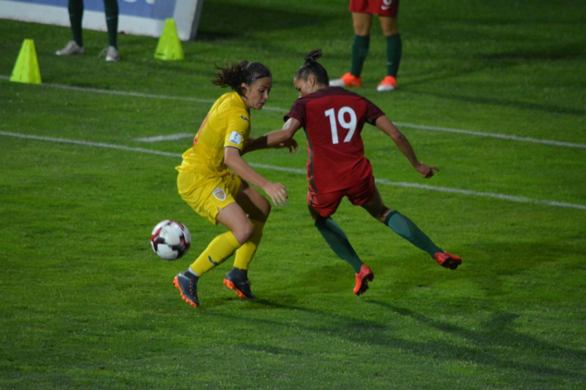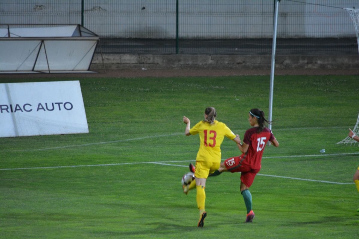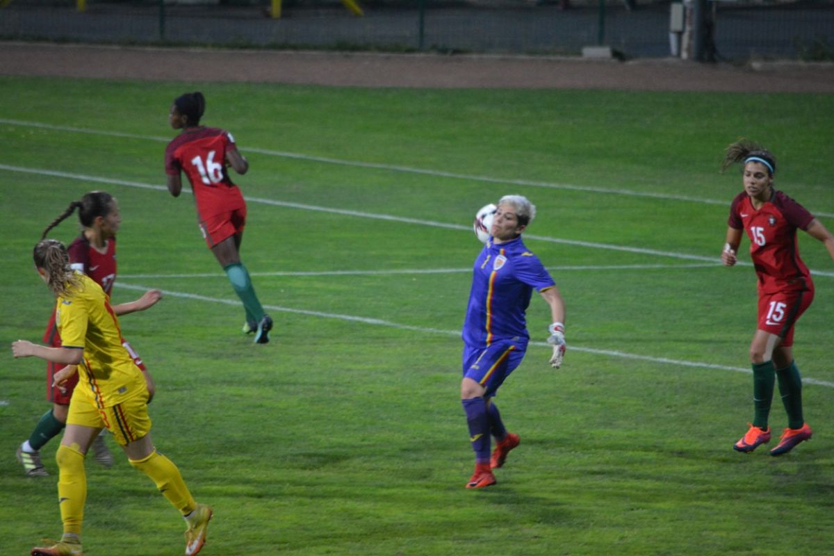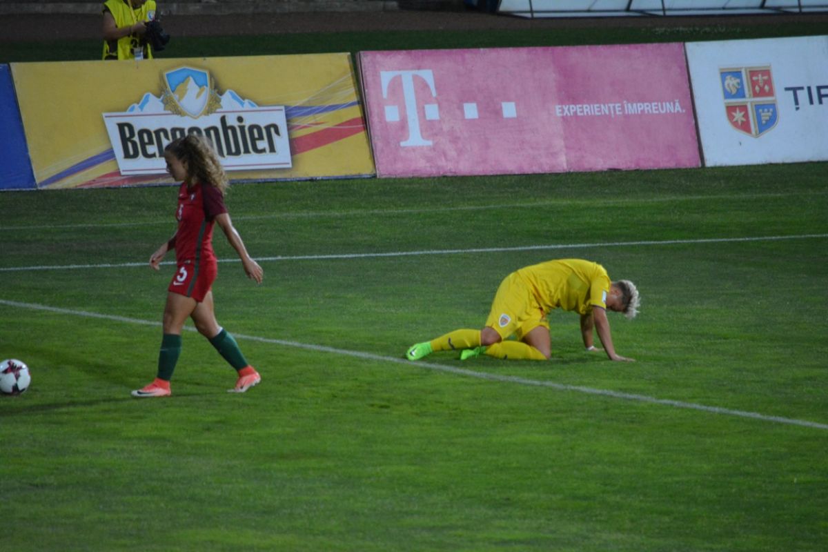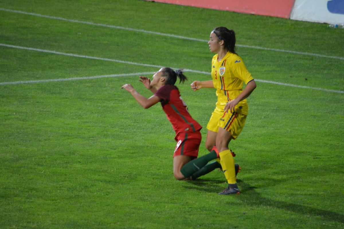 România a deschis scorul prin Isabelle Mihai în minutul 34, cu o reușită realmente specială. Tricolora a observat-o ieșită din poartă pe Ines Pereira și a trimis o minge cu boltă care a surprins-o pe iberică.
