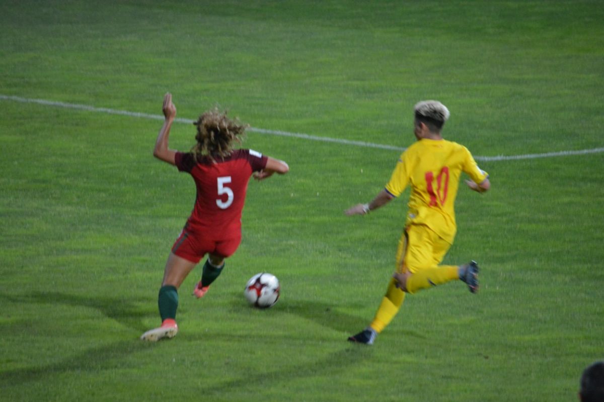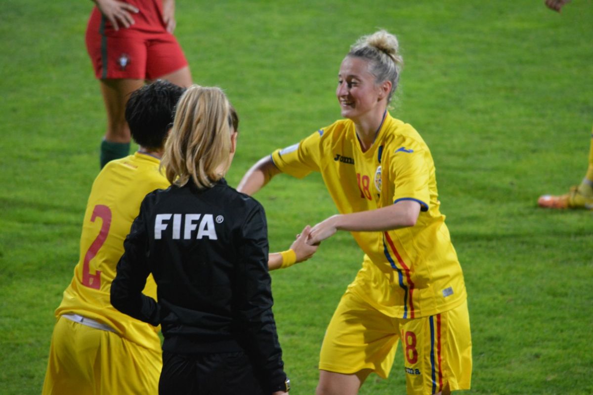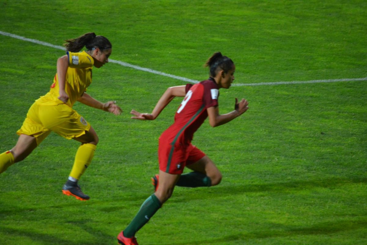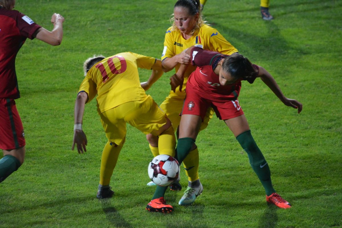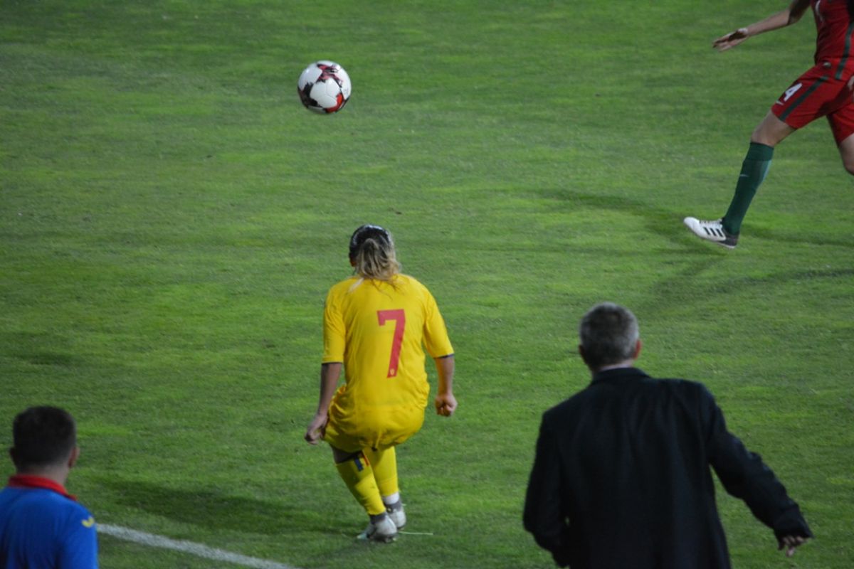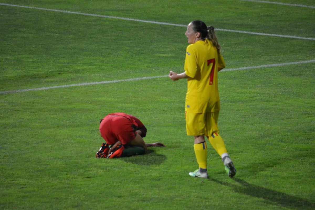 România a deschis scorul prin Isabelle Mihai în minutul 34, cu o reușită realmente specială. Tricolora a observat-o ieșită din poartă pe Ines Pereira și a trimis o minge cu boltă care a surprins-o pe iberică.