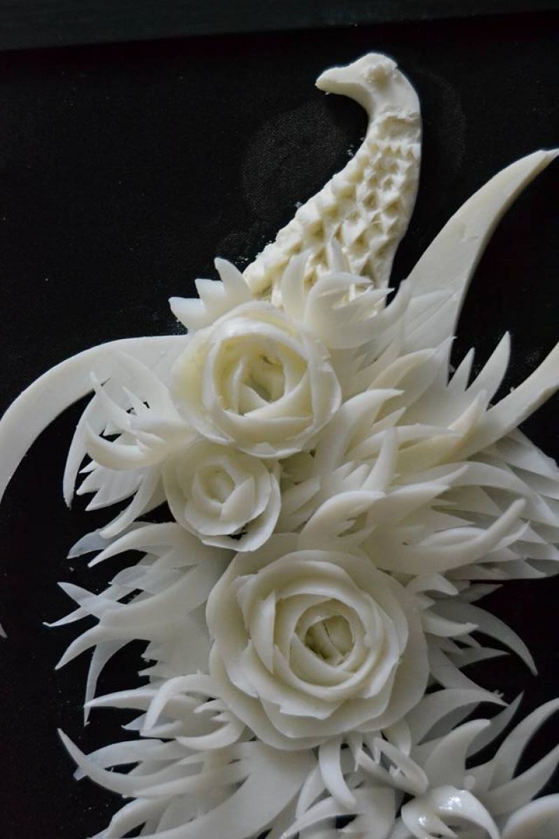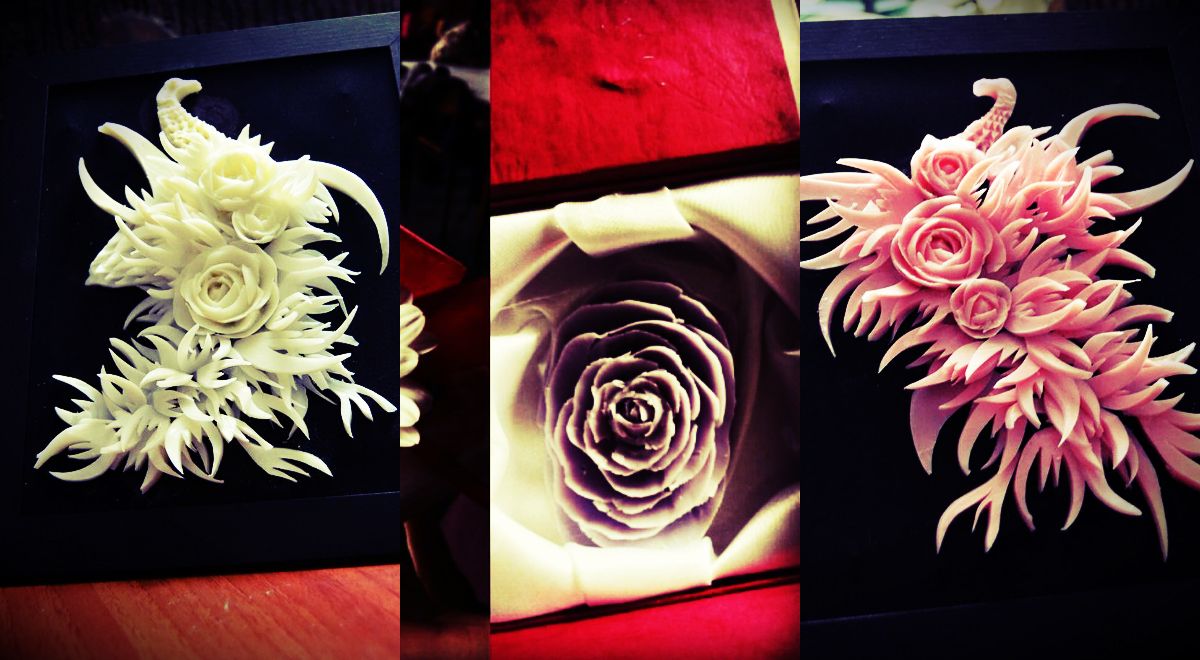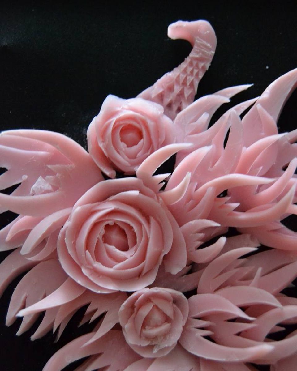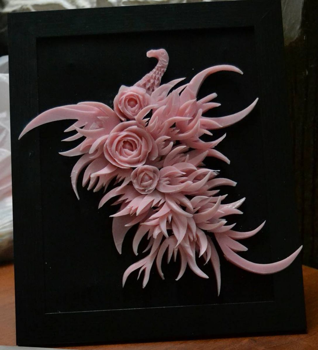 Este vorba despre Elisei David, tânărul despre care putem spune că a devenit un maestru în arta sculpturii pe fructe. De curând, el s-a reinventat pentru a-și mulțumi clienții. Pe lângă sculpturile în fructe, destul de solicitate la nunți, botezuri și așa mai departe, Elisei a început să-și concentreze atenția și să-și pună în practică talentul și pe alte produse la care noi, cei mulți, nu ne-am fi gândit: săpunurile. De pildă, botoșăneanul s-a gândit ca în preajma sărbătorilor de iarnă să creeze cadouri inedite pentru cei care vor să-și surprindă persoanele dragi. Sculptează în săpunuri puternic parfumate, diferite forme de flori, iar rezultatul este unul care te lasă fără grai. Mai mult decât atât, inventivitatea botoșăneanului nu se oprește aici. Tânărul a pus la vânzare pe rețeaua socială Facebook și diferite tablouri făcute chiar de el, elementul principal în decor fiind florile sau păsările atent sculptate.