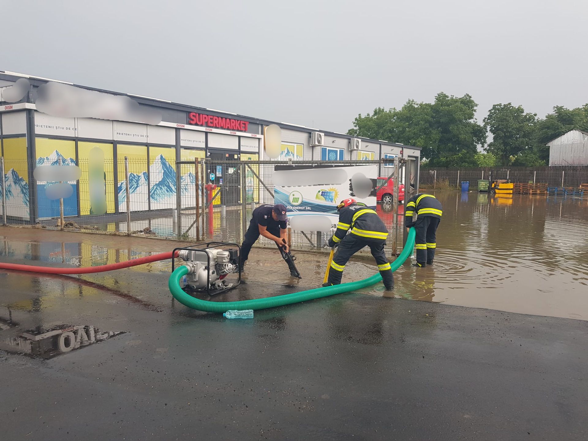 La Ștefănești, au fost solicitați pentru evacuarea apei dintr-un supermarket și curtea acestuia. Au intervenit pompierii din cadrul Gărzii de Intervenție Ștefănești, cu o autospecială și o motopompă.