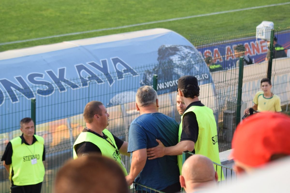 După ce s-au răstit unii la alții, botoșăneanul a acceptat de bună voie să părăsească tribuna și a fost escortat până aproape de ieșirea principală. Iar acest lucru s-a petrecut în condițiile în care frecvent reprezentanții clubului FC Botoșani se plâng de faptul că numărul suporterilor care vin pe stadion este într-o continuă scădere.