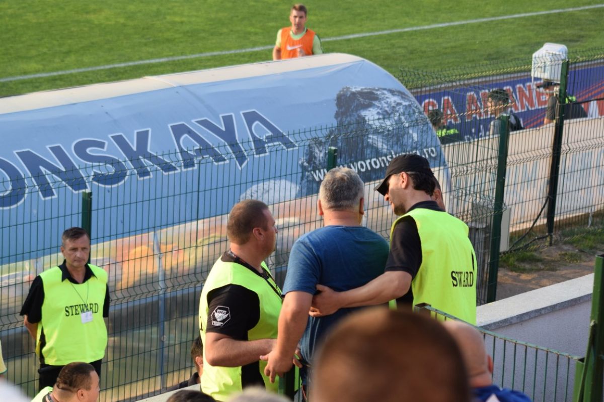 Un botoșănean a fost scos de la una din tribunele aflate lângă tunel după ce a avut ”tupeul” să sară un gărduț. A ales varianta pentru a ajunge mai repede la locul lui, fără a mai înconjura.