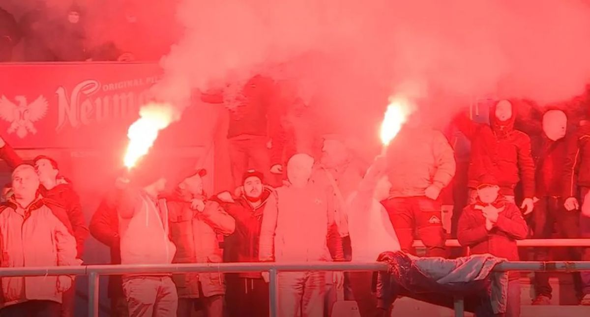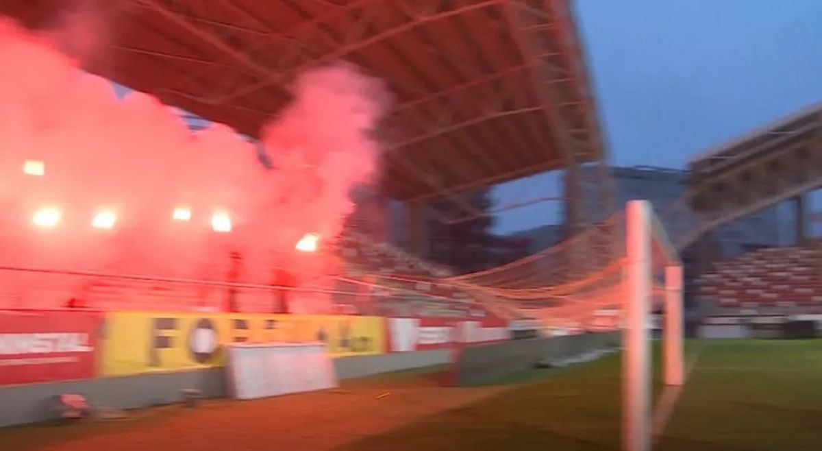 Fanii și jucătorii celor de la UTA, „încălzire” cu torțe pentru meciul cu Botoșani.