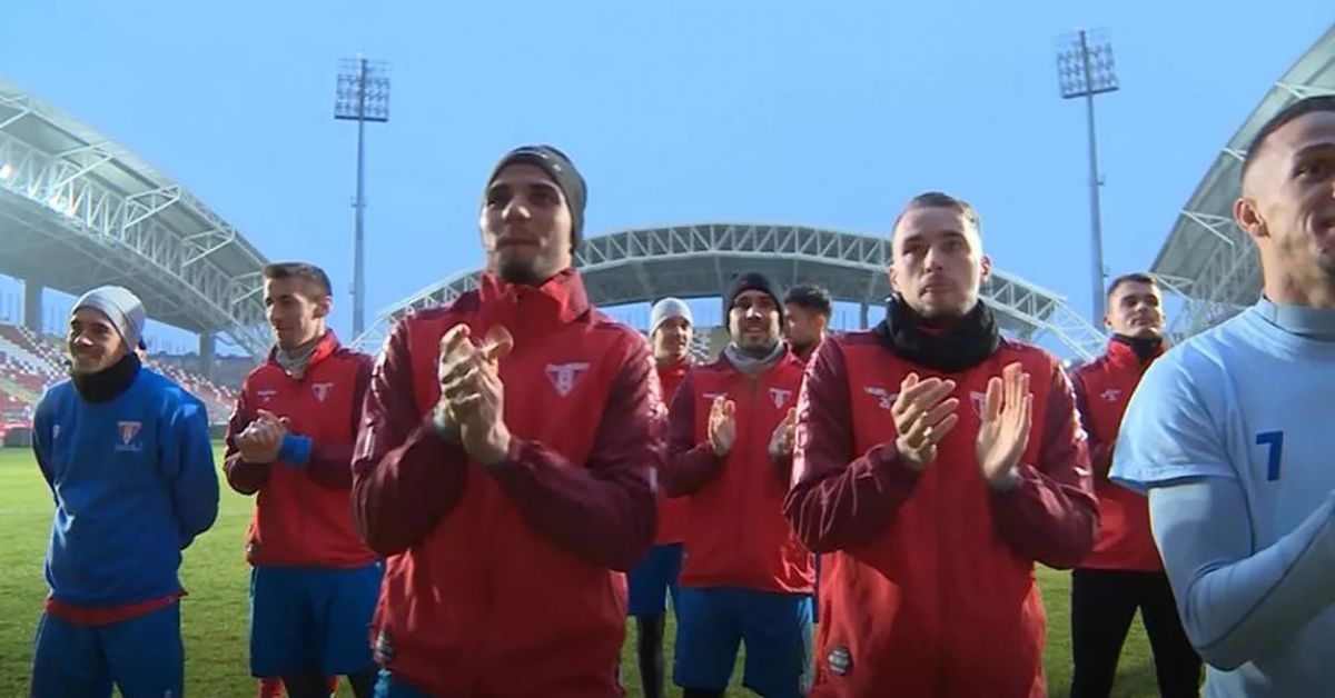 Suporterilor li s-a adresat scurt antrenorul Laszlo Balint, care condusese antrenamentul oficial pe terenul „ICRTI” și nu pe „Francisc Neuman”, tocmai pentru a proteja gazonul înainte de meciul de sâmbătă, de la ora 15:00: