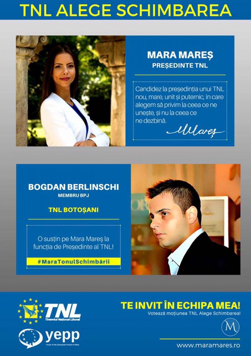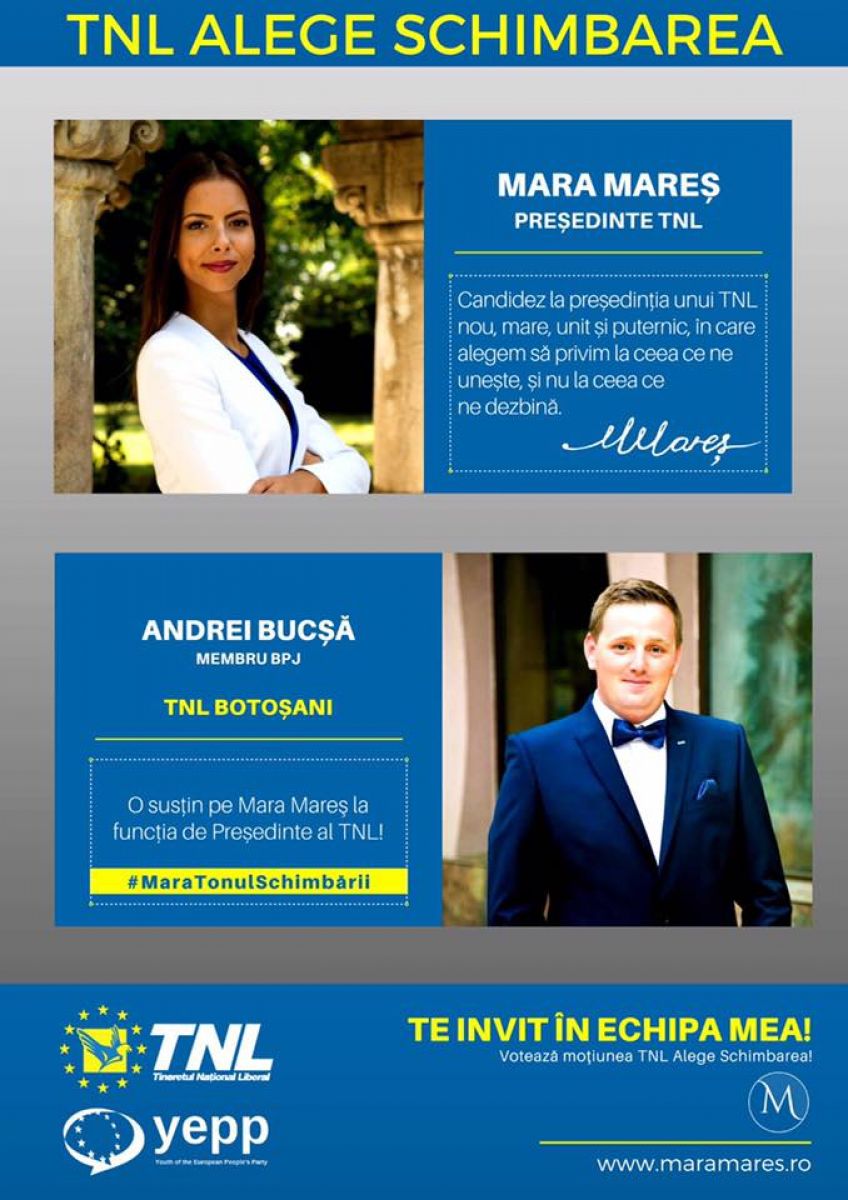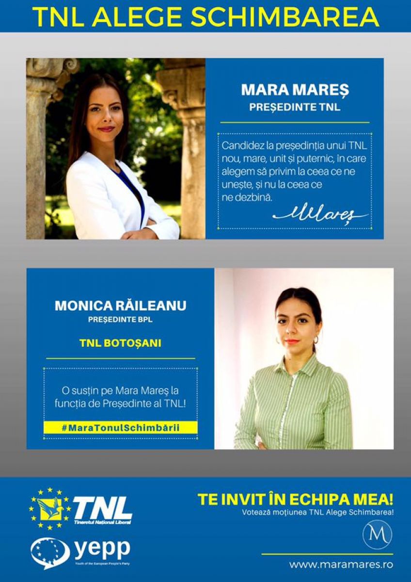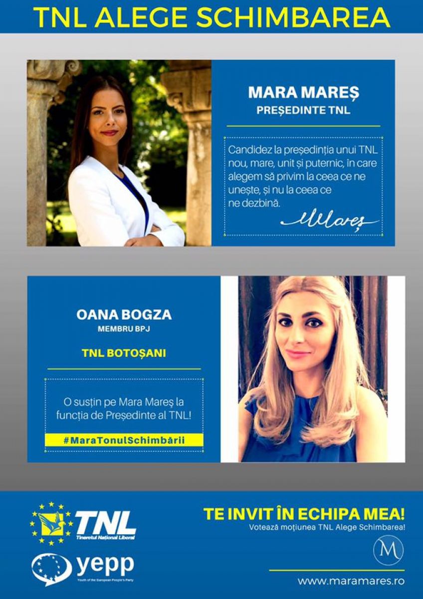 După ce s-a făcut public sprijinul pentru Mara Mareş, fiica unui consilier judeţean liberal, fost preşedinte judeţean la PDL, mai mulţi tineri PNL-işti botoşăneni şi-au făcut colaje prin care îşi arată ataşamentul faţă de aceasta.