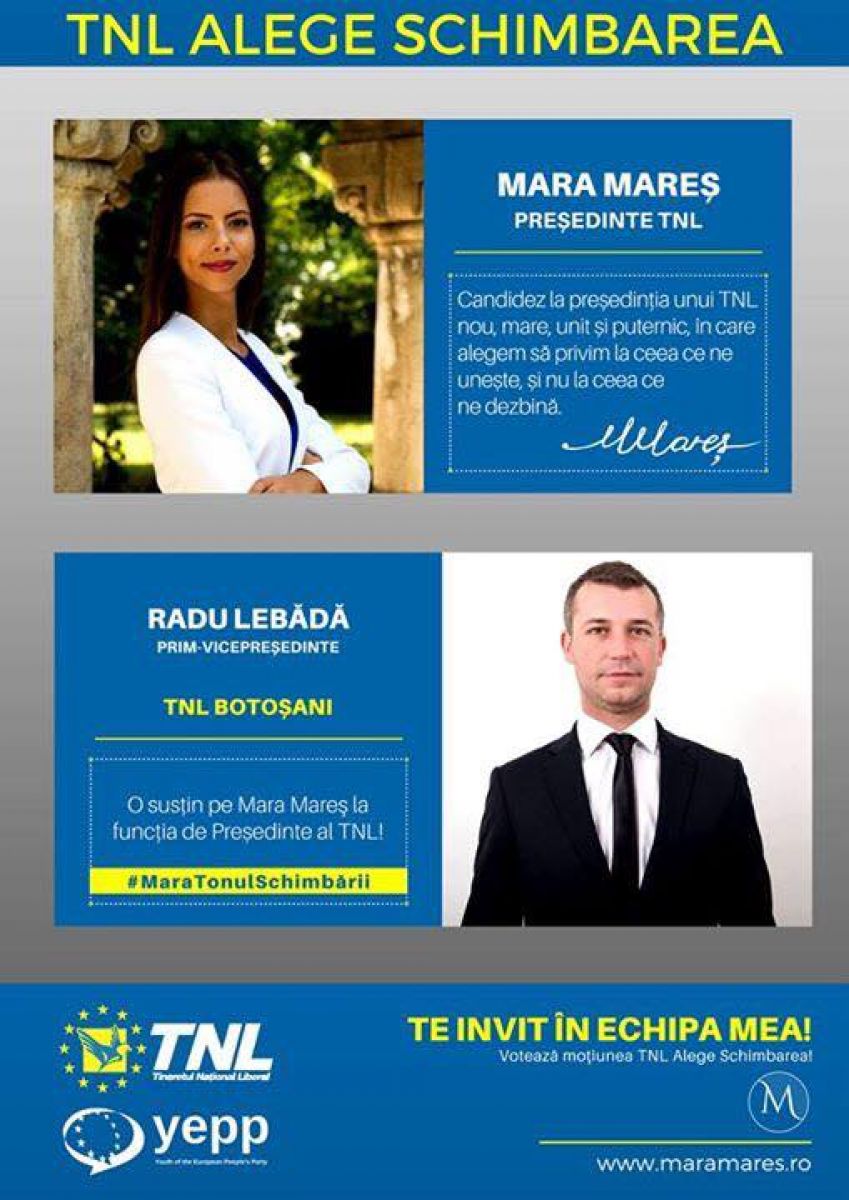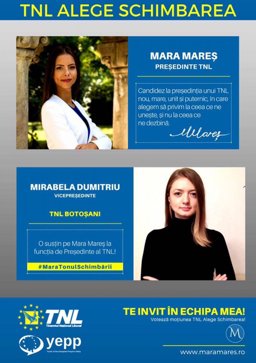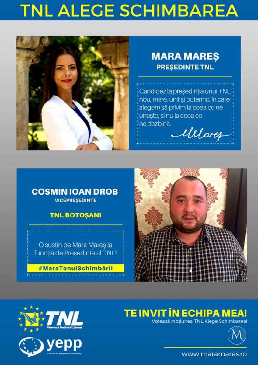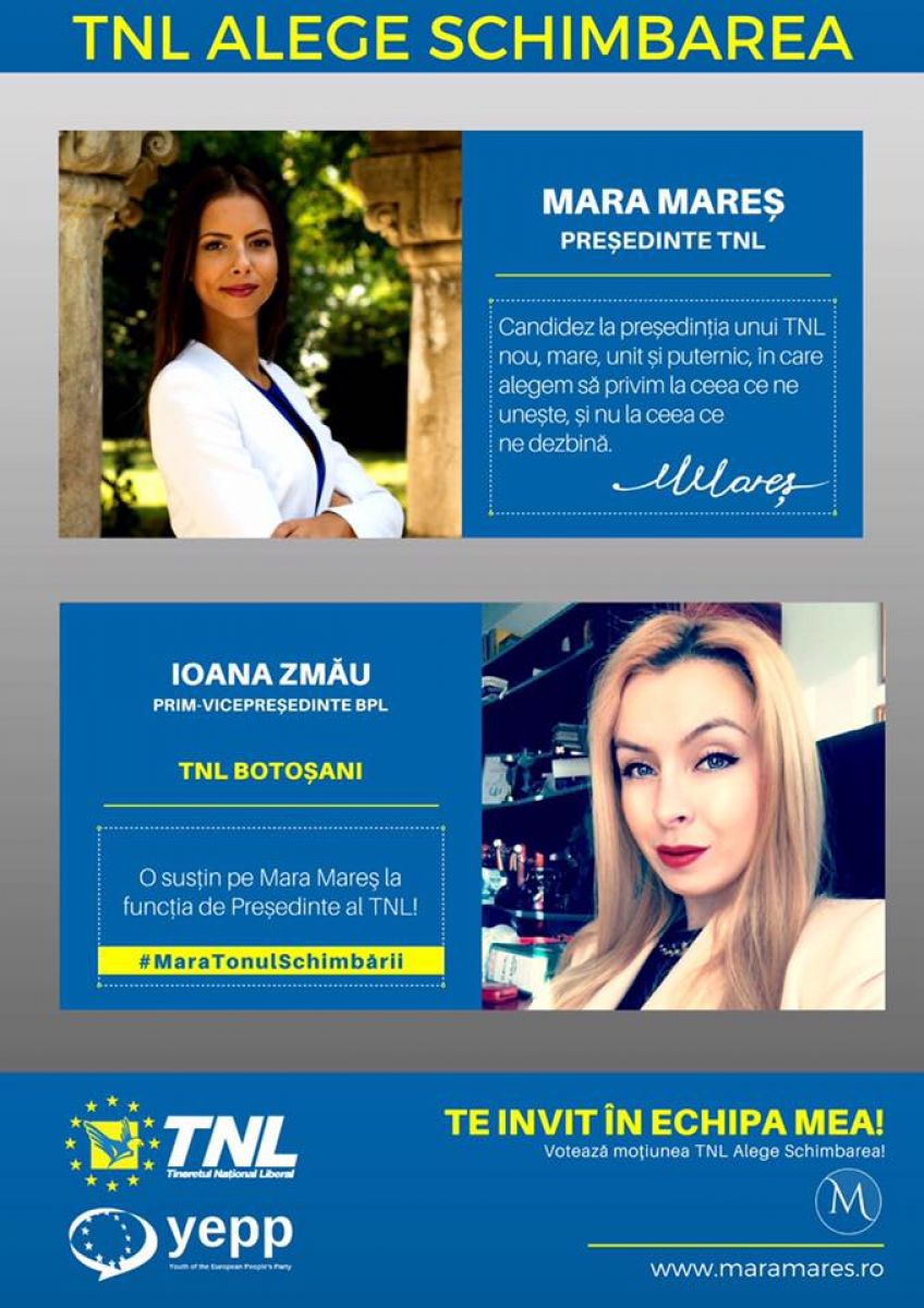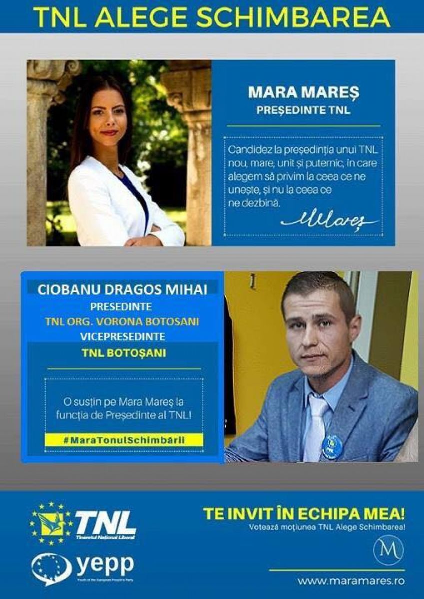 După ce s-a făcut public sprijinul pentru Mara Mareş, fiica unui consilier judeţean liberal, fost preşedinte judeţean la PDL, mai mulţi tineri PNL-işti botoşăneni şi-au făcut colaje prin care îşi arată ataşamentul faţă de aceasta.