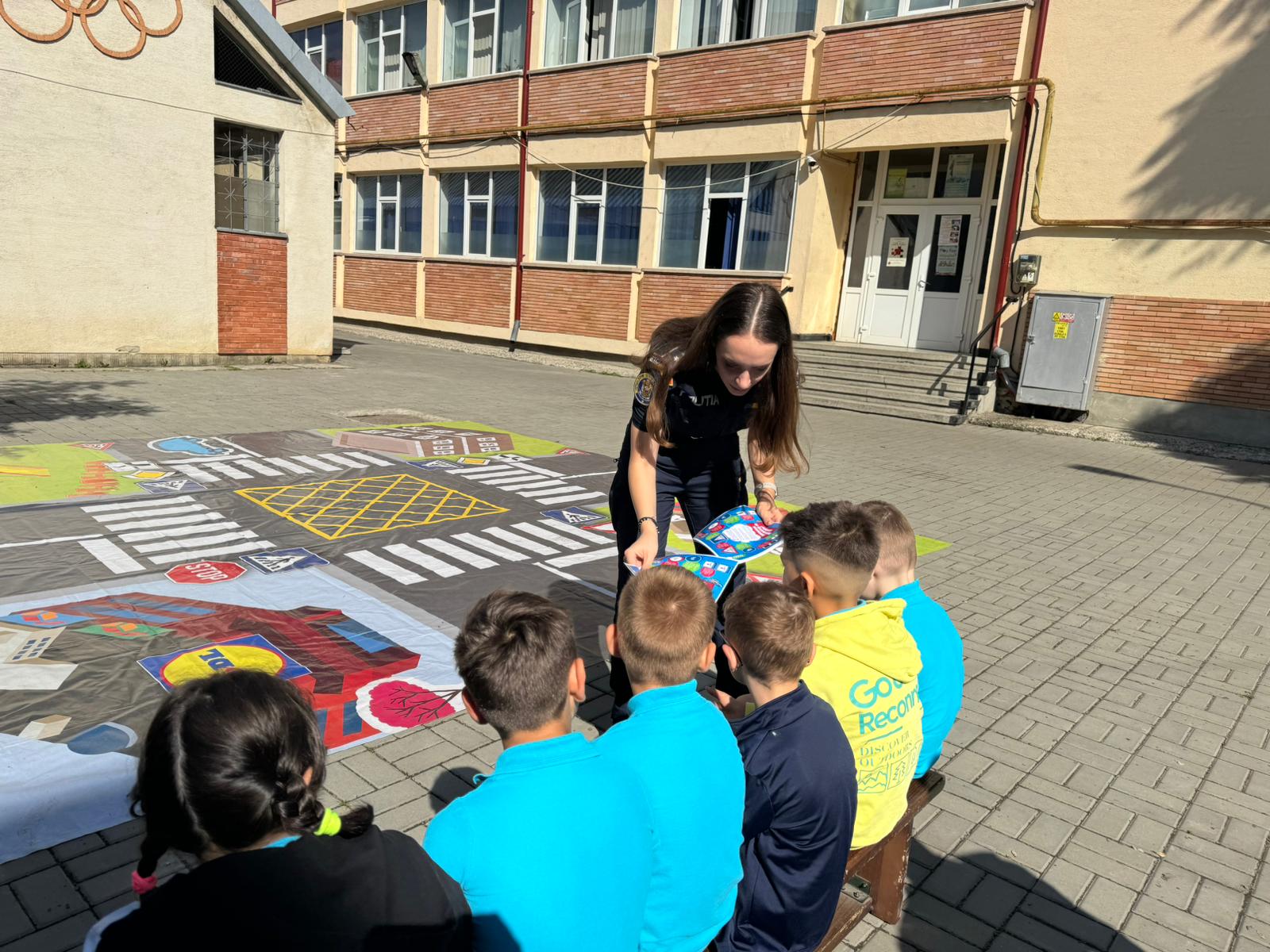 Polițiștii le-au prezentat copiilor regulile de circulație și importanța respectării acestora pentru prevenirea implicării în evenimente rutiere nedorite.